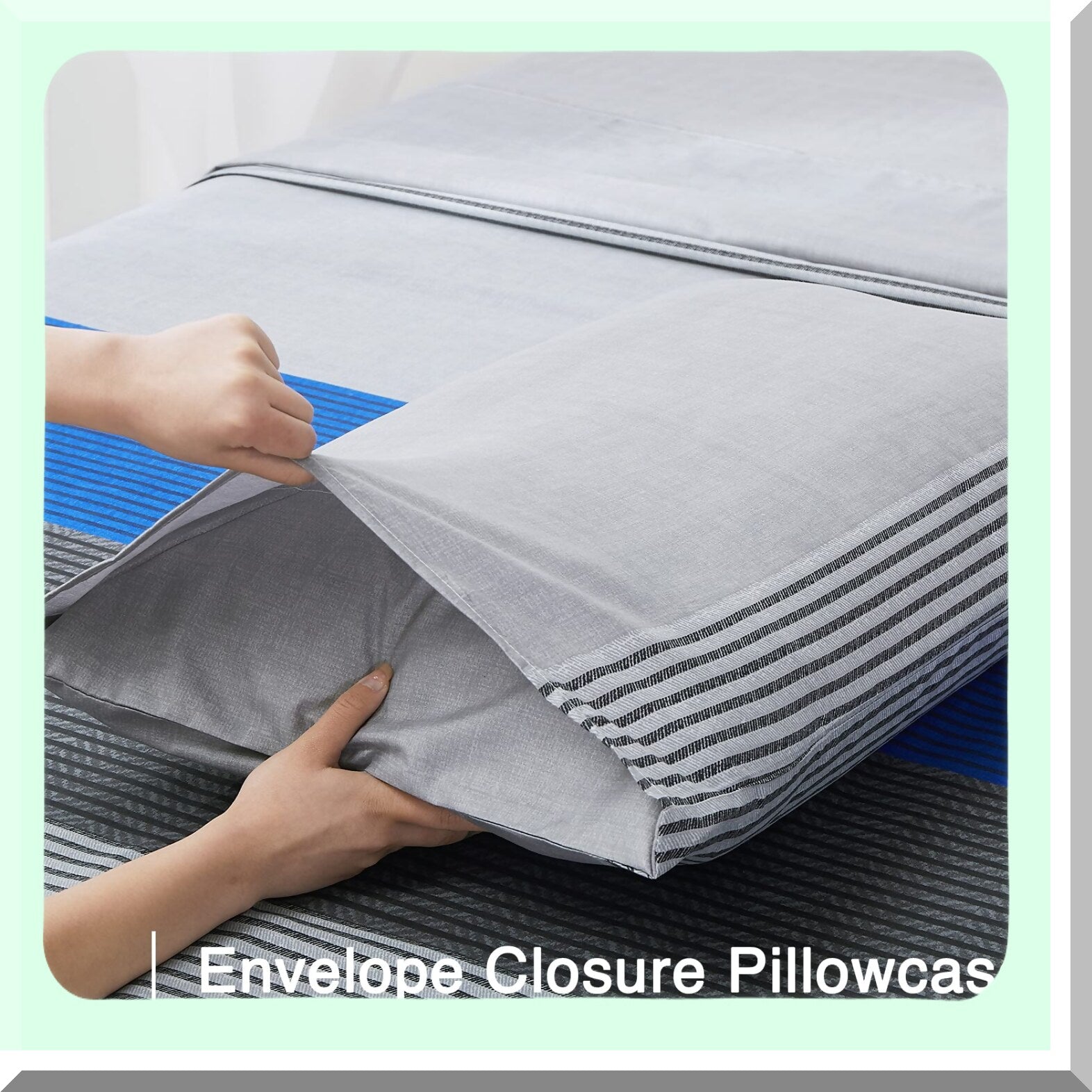 Blue StripeSoft Microfiber Bedding Set - Wrinkle Free 4 Piece Sheet Set with Deep Pocket - Includes Fitted Sheet, Flat Sheet, and Pillowcases