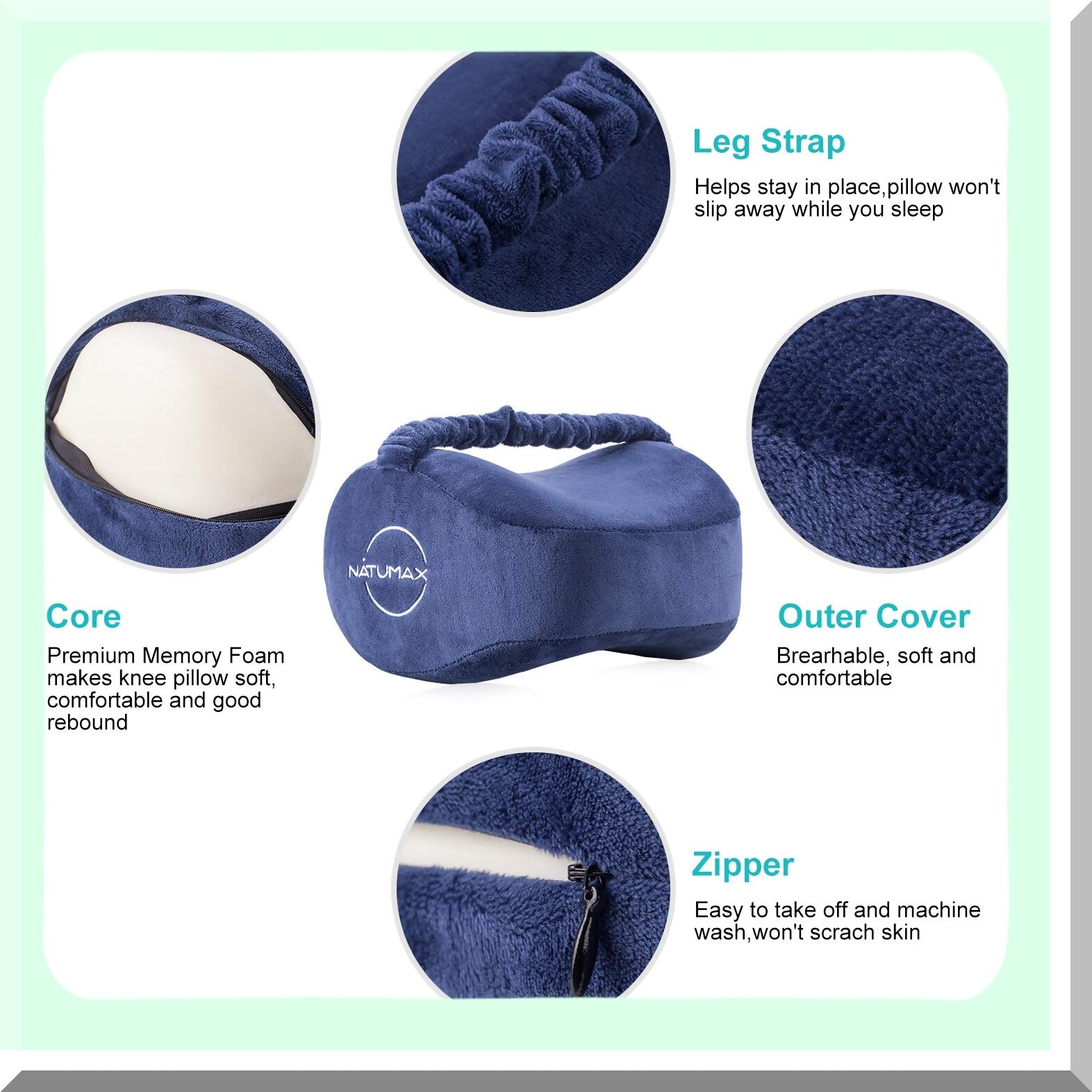 The memory foam pillow is ergonomically designed to provide comfortable alignment for hips, knees, and back when placed between the legs. This design helps reduce discomfort and promote better sleep quality.