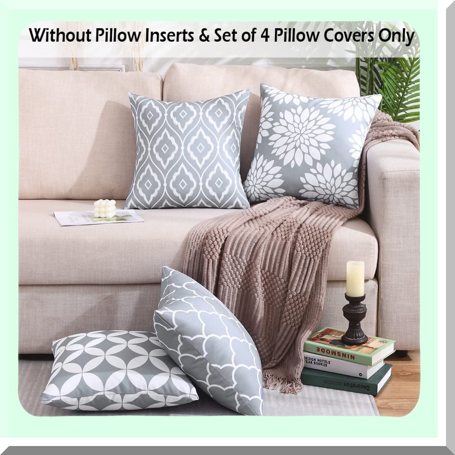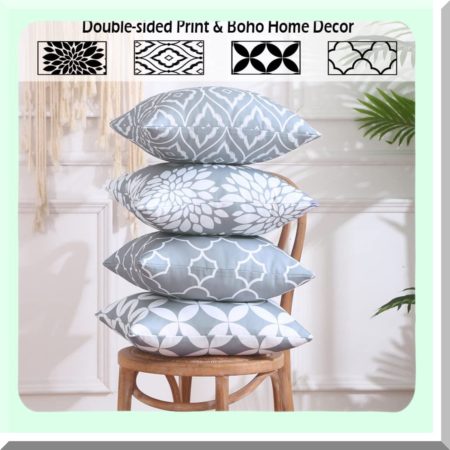 Neutral Elegance Decor Set - 18x18 Grey & White Outdoor Waterproof Pillow Covers for Living Room Sofa - 4 Pack of Light Grey Couch Pillows
