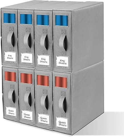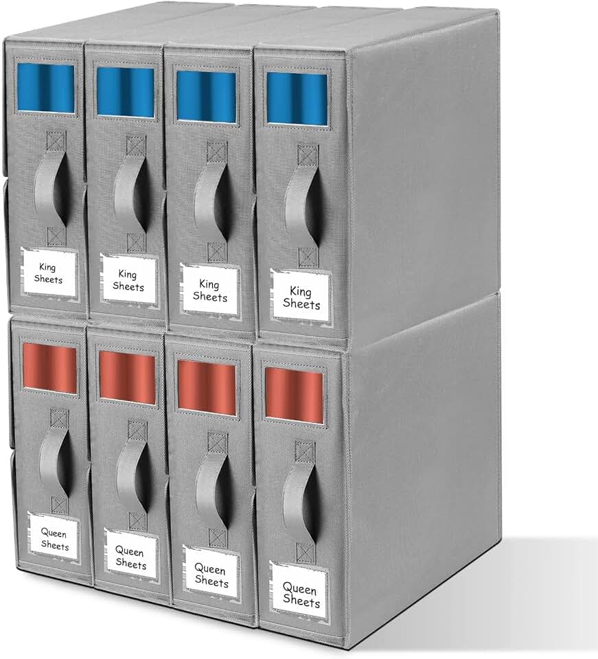 This set includes eight foldable storage containers designed for organizing bedding, towels, and linens. Each cube is made from durable material with a sturdy handle for easy carrying and access. The compact design helps maximize space in closets, shelves, or drawers, keeping items neatly stored and easily accessible. These versatile organizers are suitable for storing duvet covers, pillowcases, blankets, and towels, helping to reduce clutter and maintain a tidy environment. The foldable feature allows for convenient storage when not in use, saving space. Ideal for use in bedrooms, linen closets, or laundry rooms, these containers provide a practical solution for keeping household essentials organized. Their sturdy construction ensures durability, while the neutral design complements various home decors. These storage boxes are a convenient way to manage and protect your bedding and linen supplies, making daily routines more efficient.