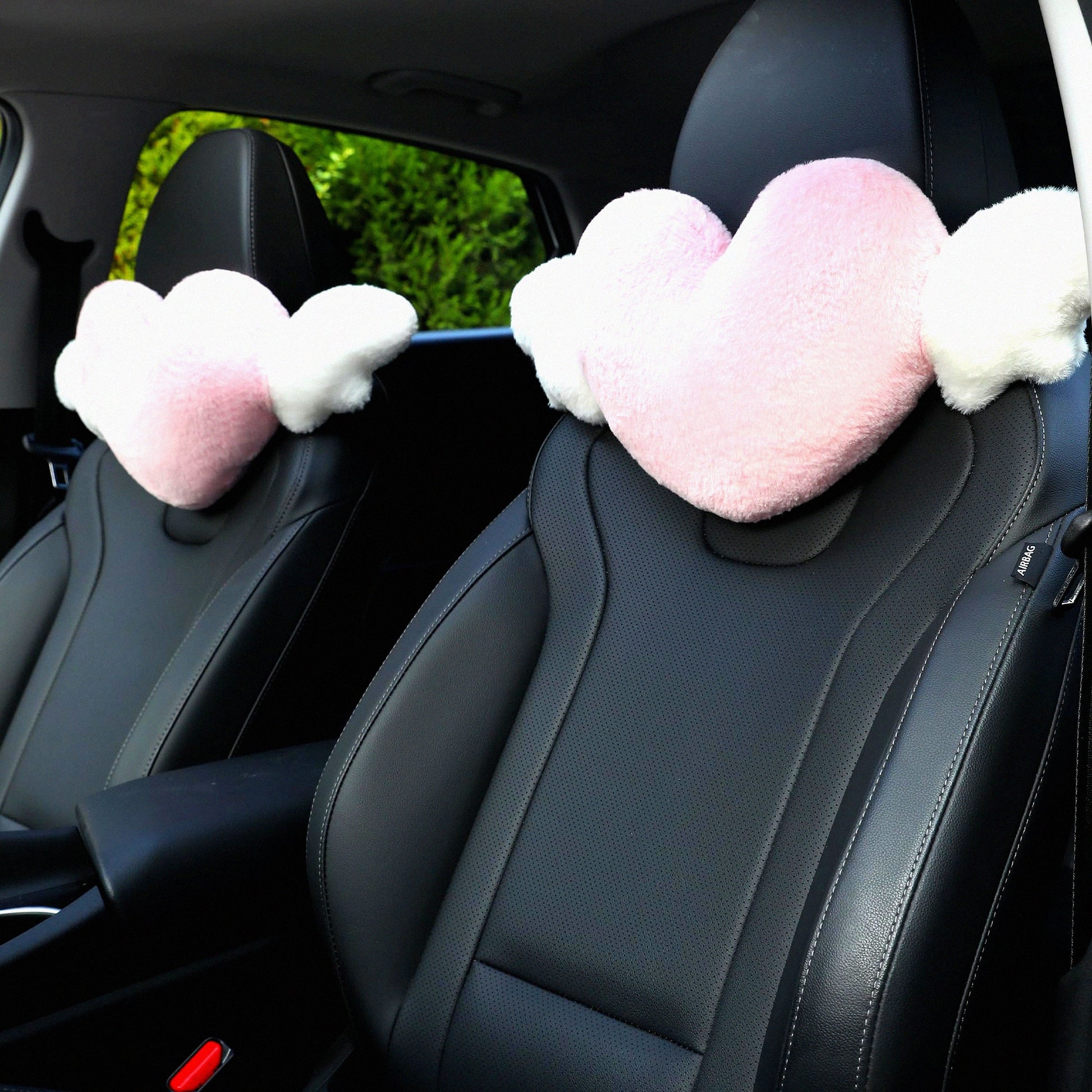 Angel Wing Heart Rest Pillow - 2 Pack Cute Car Headrest Cushion for Driving & Traveling - Soft Kawaii Neck Support - Pink Love Decor