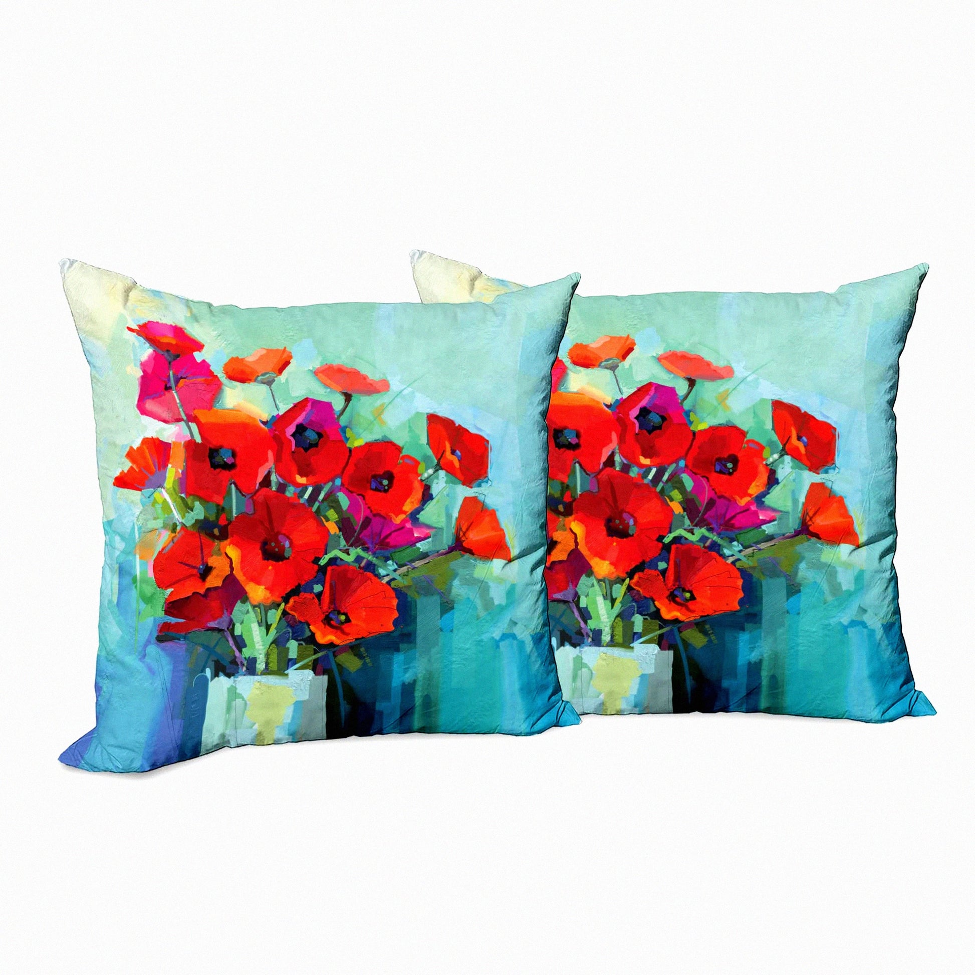 Poppy Bouquet Impressionist Throw Pillow Cover Set - Floral Painting Decorative Cushion Case Pack of 2, Double-Sided Zippered 16" Multicolor Digital Print