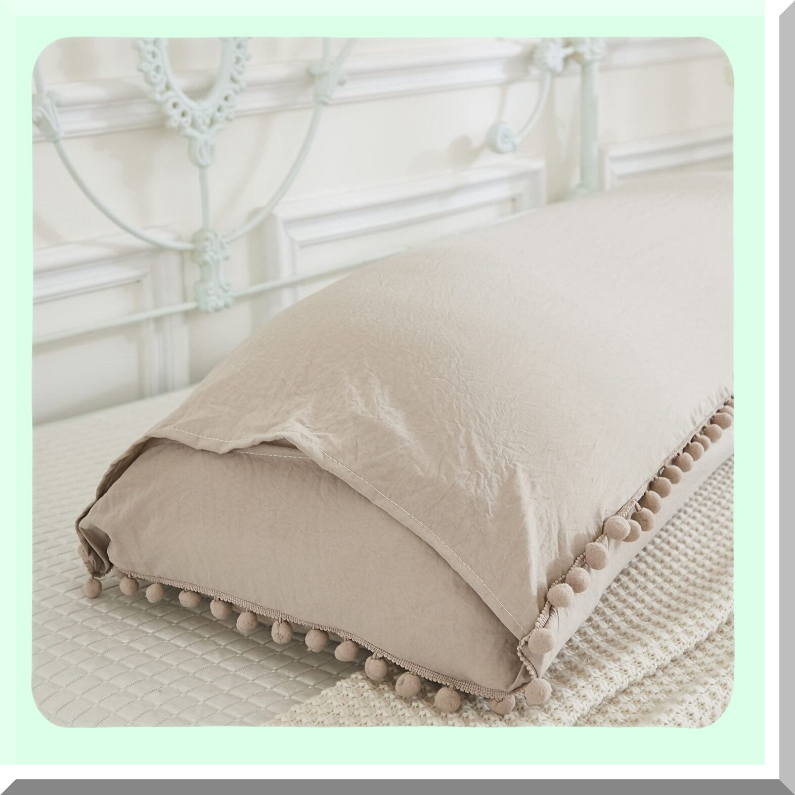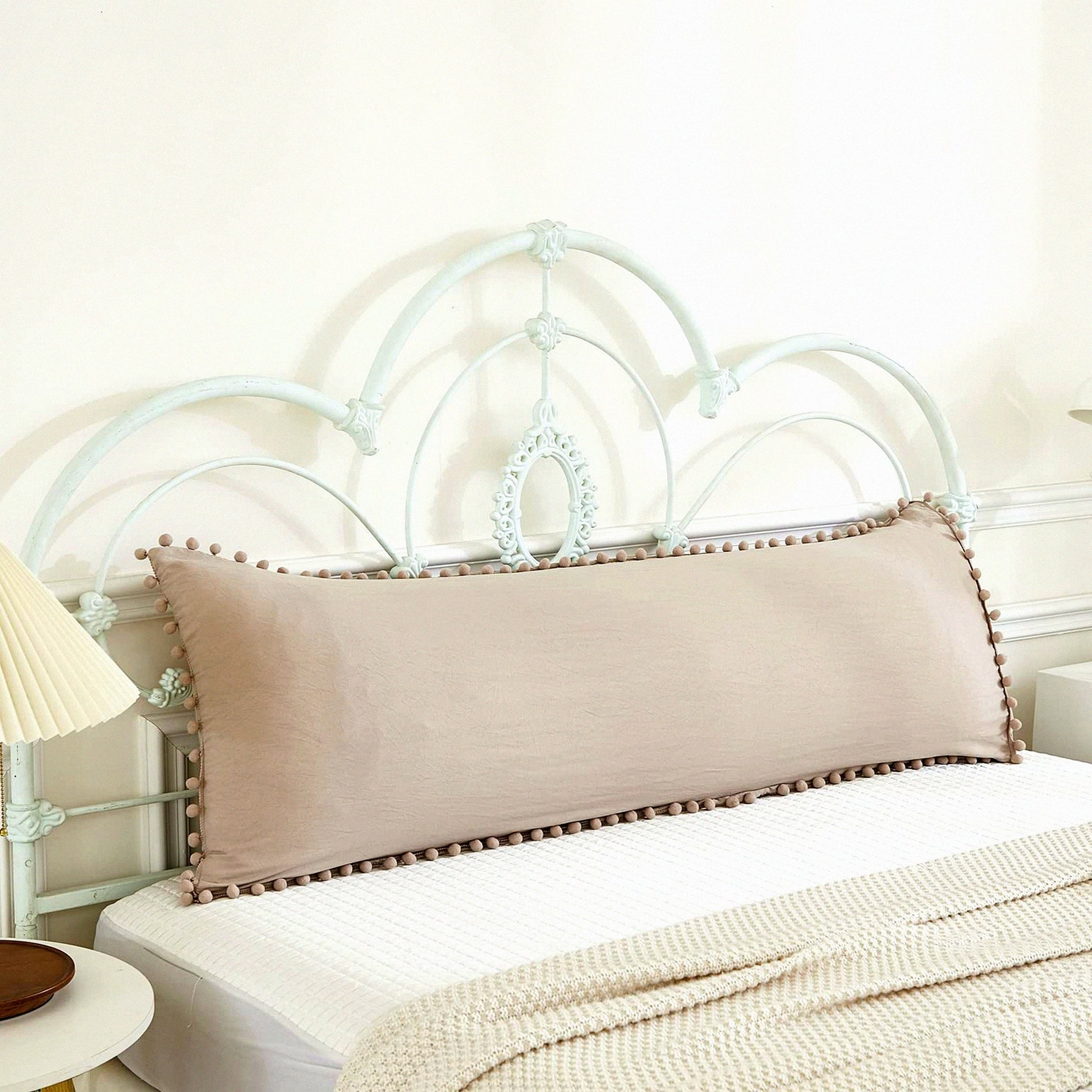 Boho Chic Fringe Pom Poms Taupe Body Pillow Cover 20x54 Light Khaki Case with Pocket Closure - Soft and Stylish Home Decor Accessory