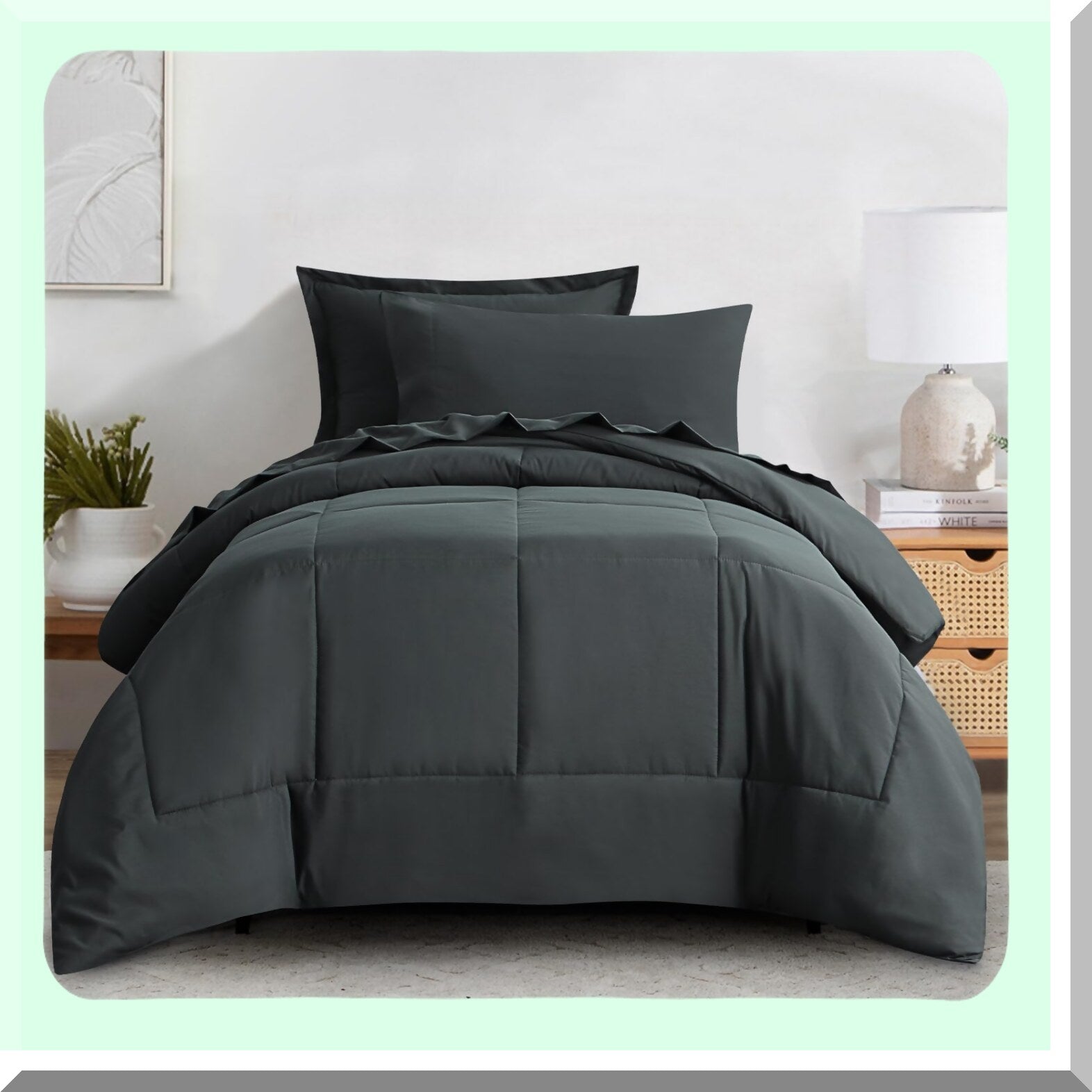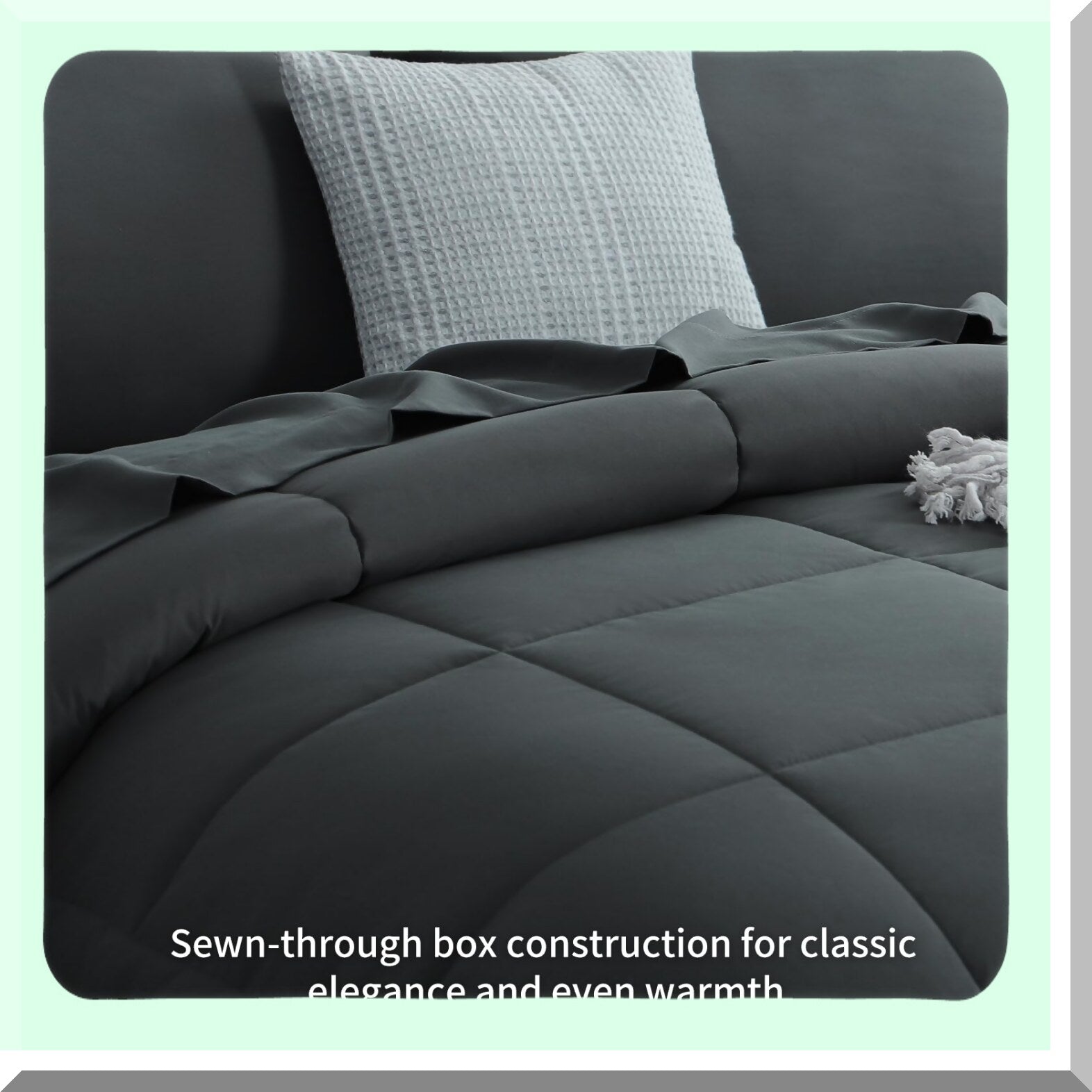 Dark Grey Twin Comforter Set - 5 Piece Bedding Bundle: Comforter, Sheets, Bed in a Bag - All Season Twin Size Bed Set - Cozy Bedroom Essentials