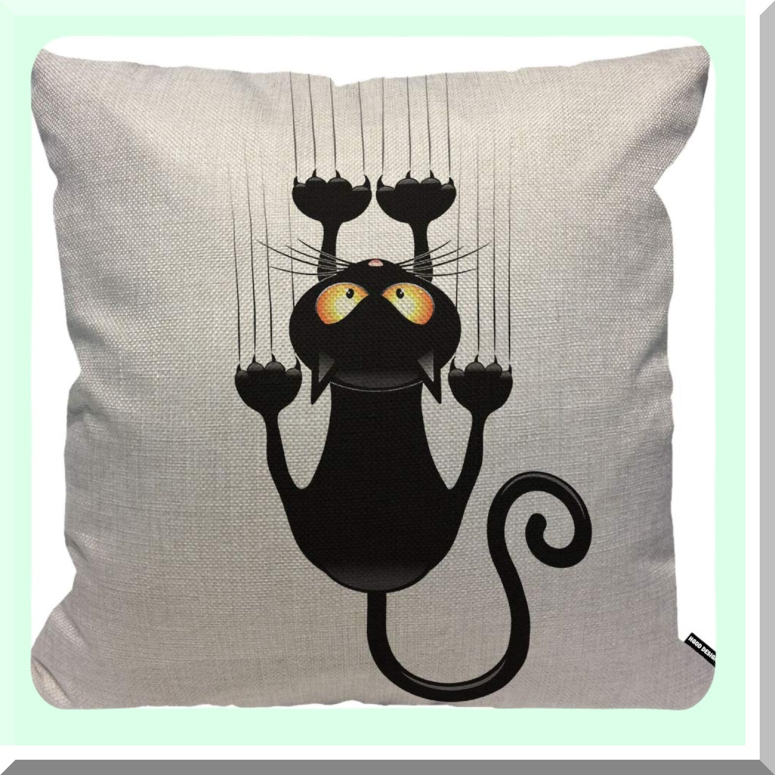 Cartoon Cat Scratch Decor Pillow - Linen Outdoor Cushion Cover for Sofa, Couch, Bed, Car - 18x18 inch Square Black Case - Cat Theme Home Decor