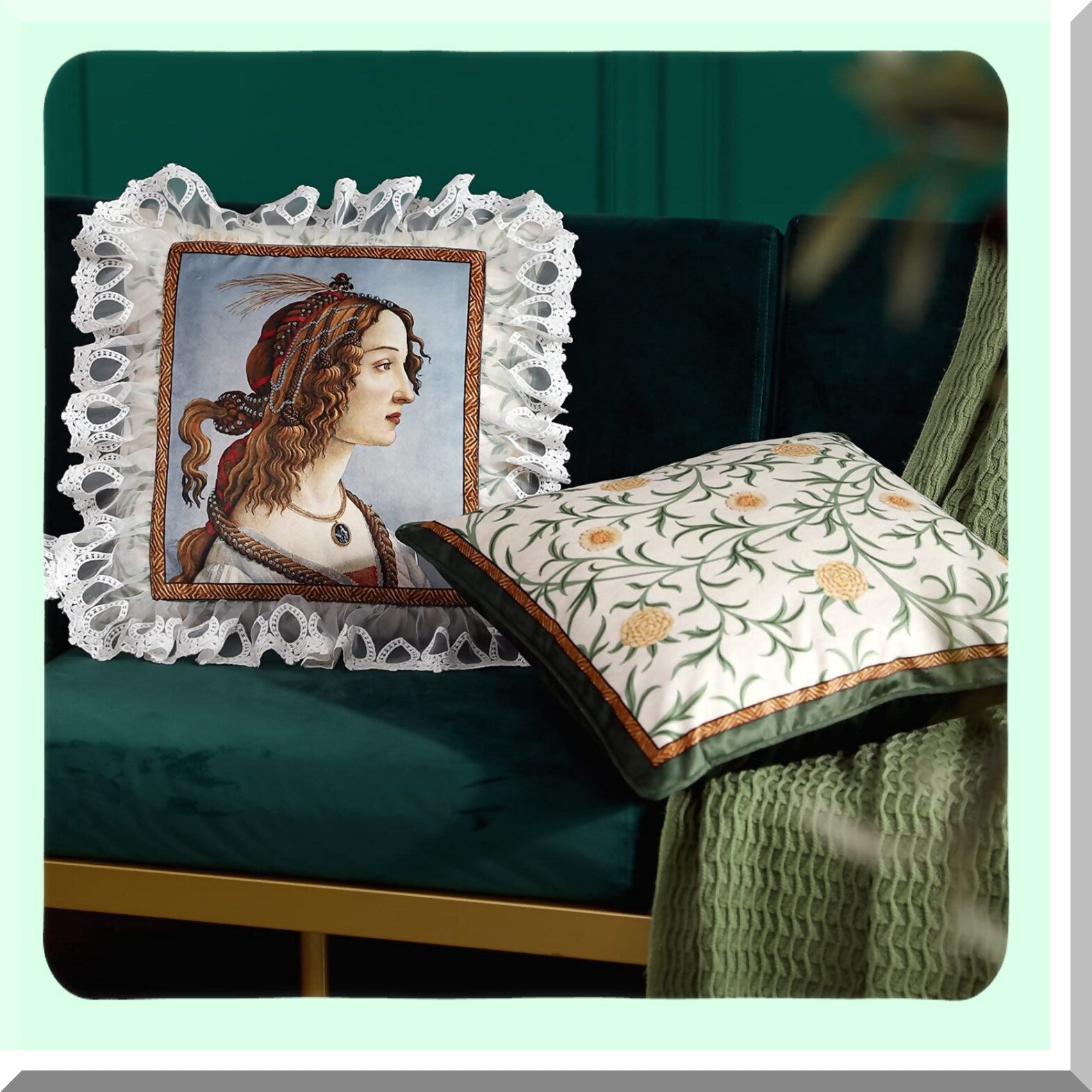 Vintage Velvet Character Pillow Covers - Farmhouse Decorative Cushion with Dutch Painting Pattern for Living Room & Outdoor. Luxuriously Soft & Designer 18"x18" Square Throw Pillows.