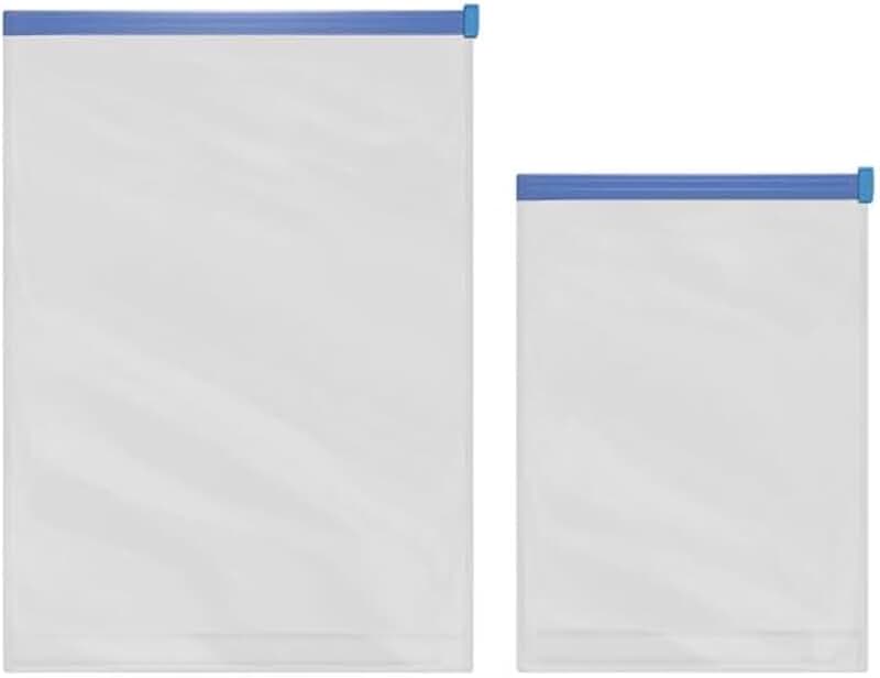 These vacuum storage bags are designed to help maximize space and organize clothing efficiently. They come in large and extra-large sizes, providing versatile options for different types of garments. The roll-and-go design allows for easy compression and compact storage, making it simple to reduce the volume of clothing items. Each set includes 20 large-sized bags and 20 extra-large bags, along with 40 zipper clips to secure contents and maintain compression. These bags are suitable for storing various clothing items, including seasonal wear, bedding, and linens. The durable material ensures protection from dust, moisture, and pests, helping to keep clothes clean and fresh during storage. Their lightweight and flexible design make them convenient for travel, moving, or long-term storage. Overall, these storage bags offer an effective solution for organizing and saving space in closets, wardrobes, or storage areas.