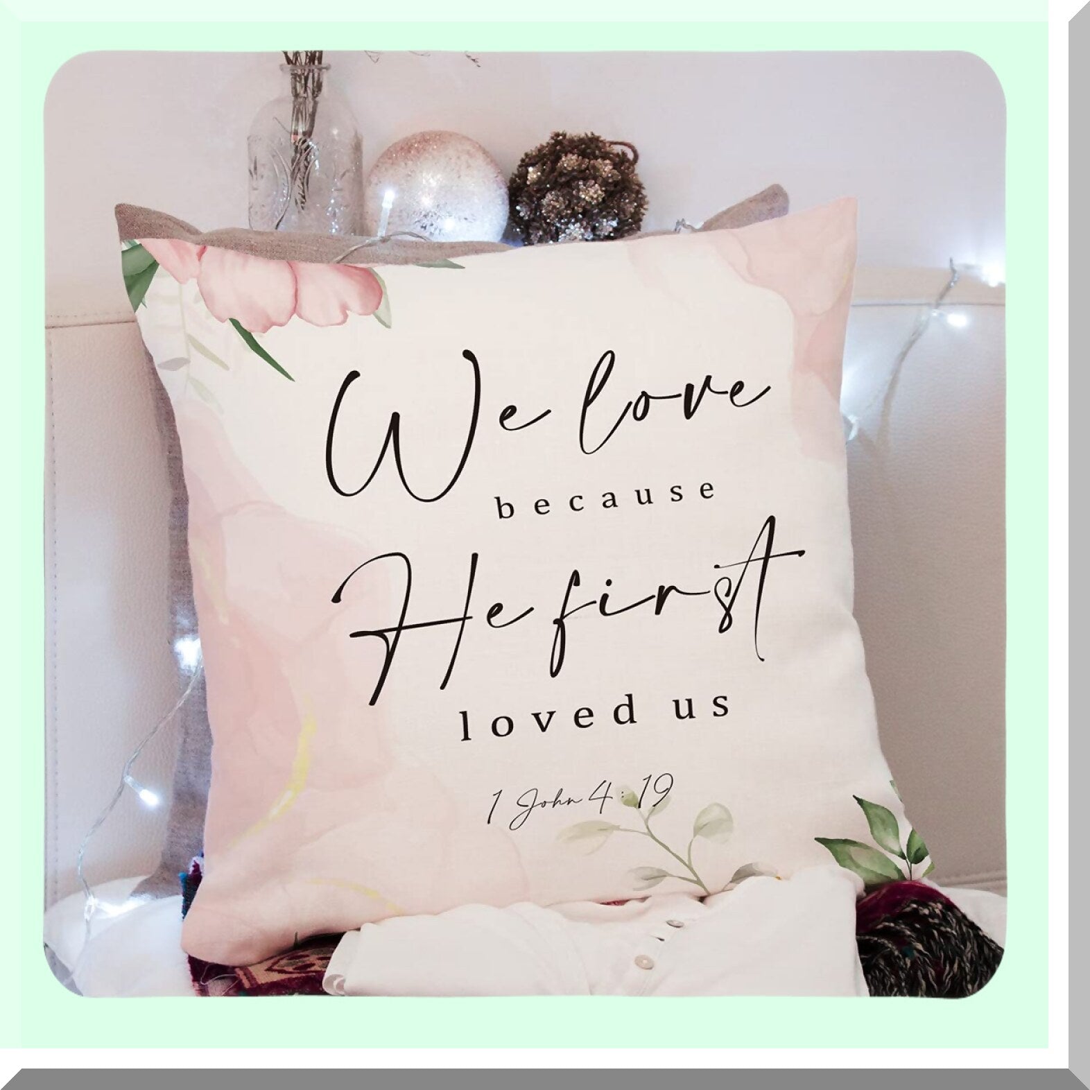 Christian Verse Decor Pillow - Scripture Sayings Cushion Cover for Sofa Bed, Living Room & Porch Decoration - Religious Bible Art Gift 18x18"