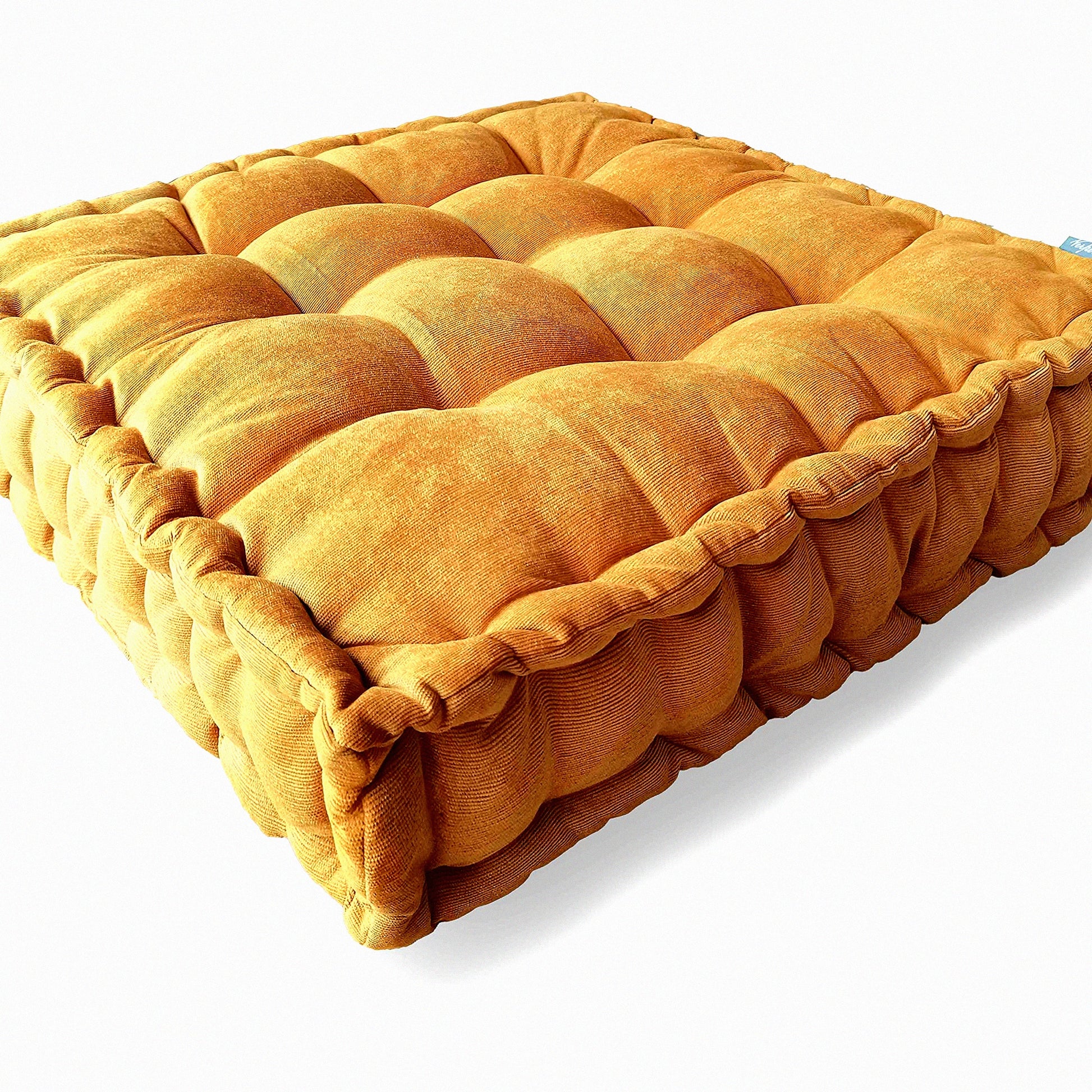 Sunshine Zen Floor Cushion - 25x25 Inch Square Meditation Pillow for Adults & Kids. Oversized Tufted Seat Cushion for Reading Nook & Yoga. Yellow Sitting Pillow for Floor Seating.