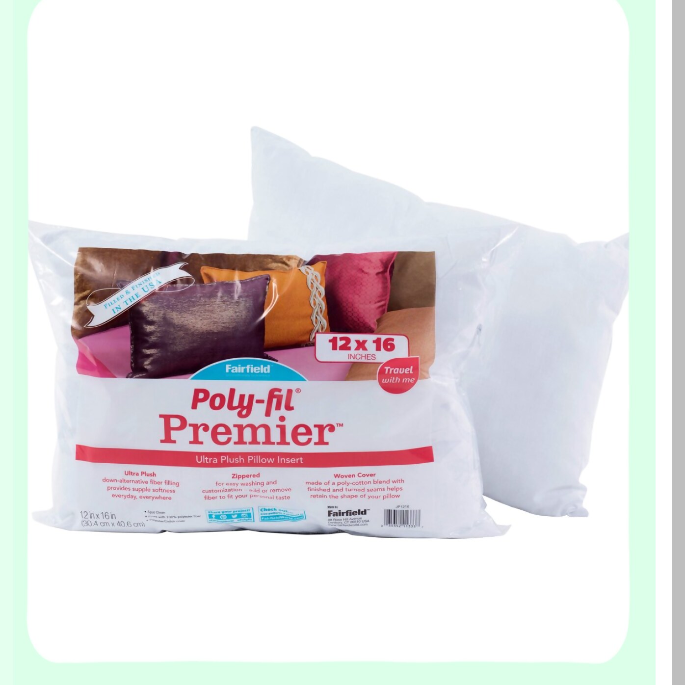Poly-fil premier 12" x 16" accent/travel pillow inserts are favored by crafters and home designers for their versatility and practicality. They are ideal for travel, school, camp, and club projects, as well as for creating tooth fairy pillows, ring bearer pillows, and enhancing children's rooms. These inserts add a splash of color and provide a cozy spot when placed on couches, window seats, or reading nooks. They offer the right balance of softness and support, featuring a cotton/polyester cover with 100% polyester filling.