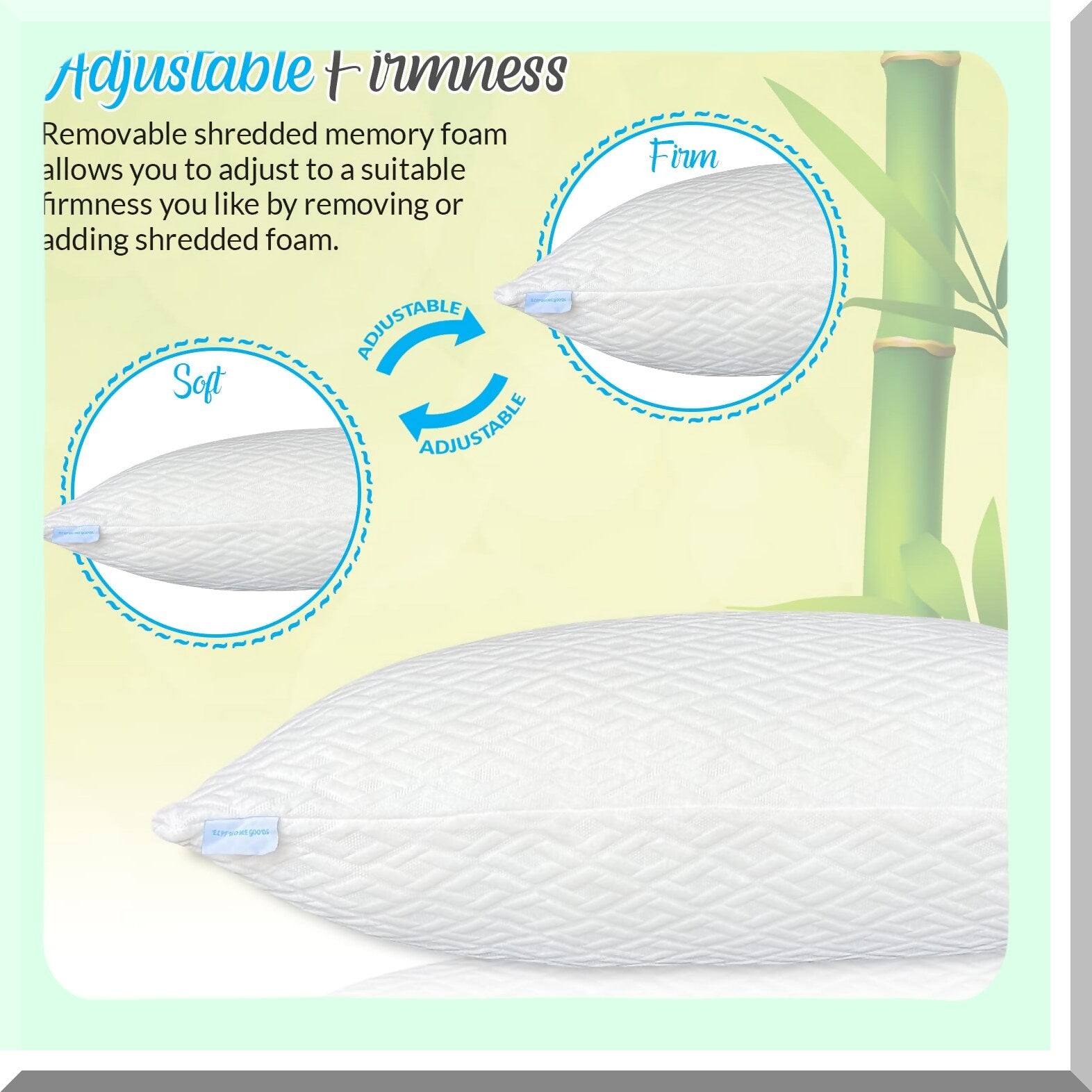 BambooCool Memory Foam Pillow - Adjustable Shredded Foam Pillow for Side, Back, Stomach Sleepers - Cooling Rayon Pillow with Washable Cover - Pack of 1