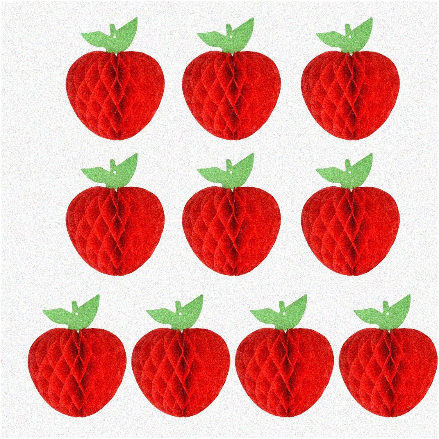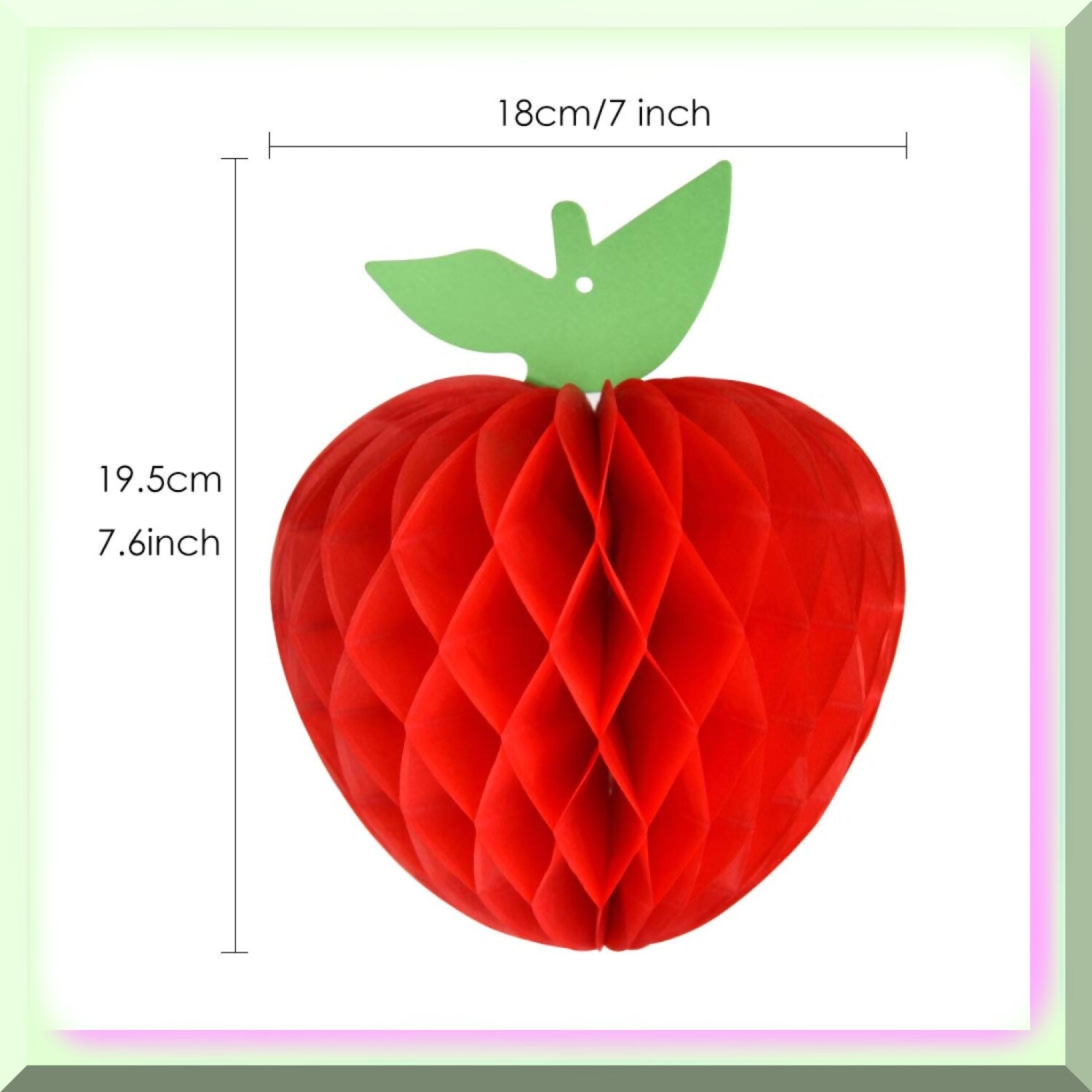 Add a whimsical touch to your event with these vibrant red honeycomb tissue paper apple decorations. Each package contains 10 high-quality paper apples, measuring approximately 19cm (7.5 inches) in height and 18cm (7 inches) in diameter. Crafted with care, these apples feature intricate honeycomb detailing that mimics the natural texture of real fruit, creating a lifelike appearance. The bold red color adds energy and excitement to any setting, making them ideal for back-to-school celebrations, baby showers, birthday parties, or home decor. Their versatile size allows for easy hanging from ceilings, placement on tables, or incorporation into centerpieces, ensuring they make a striking visual impact. Please keep these decorations out of reach of small children. These charming paper apples are designed to bring a lively, colorful atmosphere to your special occasion, captivating guests with their detailed craftsmanship and vibrant hue.