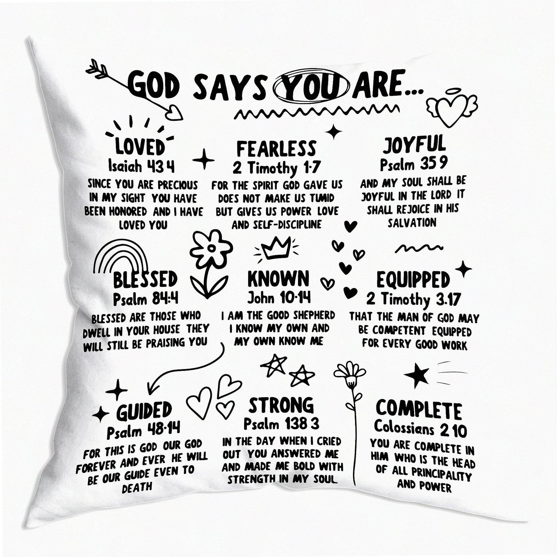 LovedJoyfulBlessedStrong Throw Pillow Covers - Christian Art Inspirational Gifts - Fearless Jesus Doodle Soft 18X18 Inch