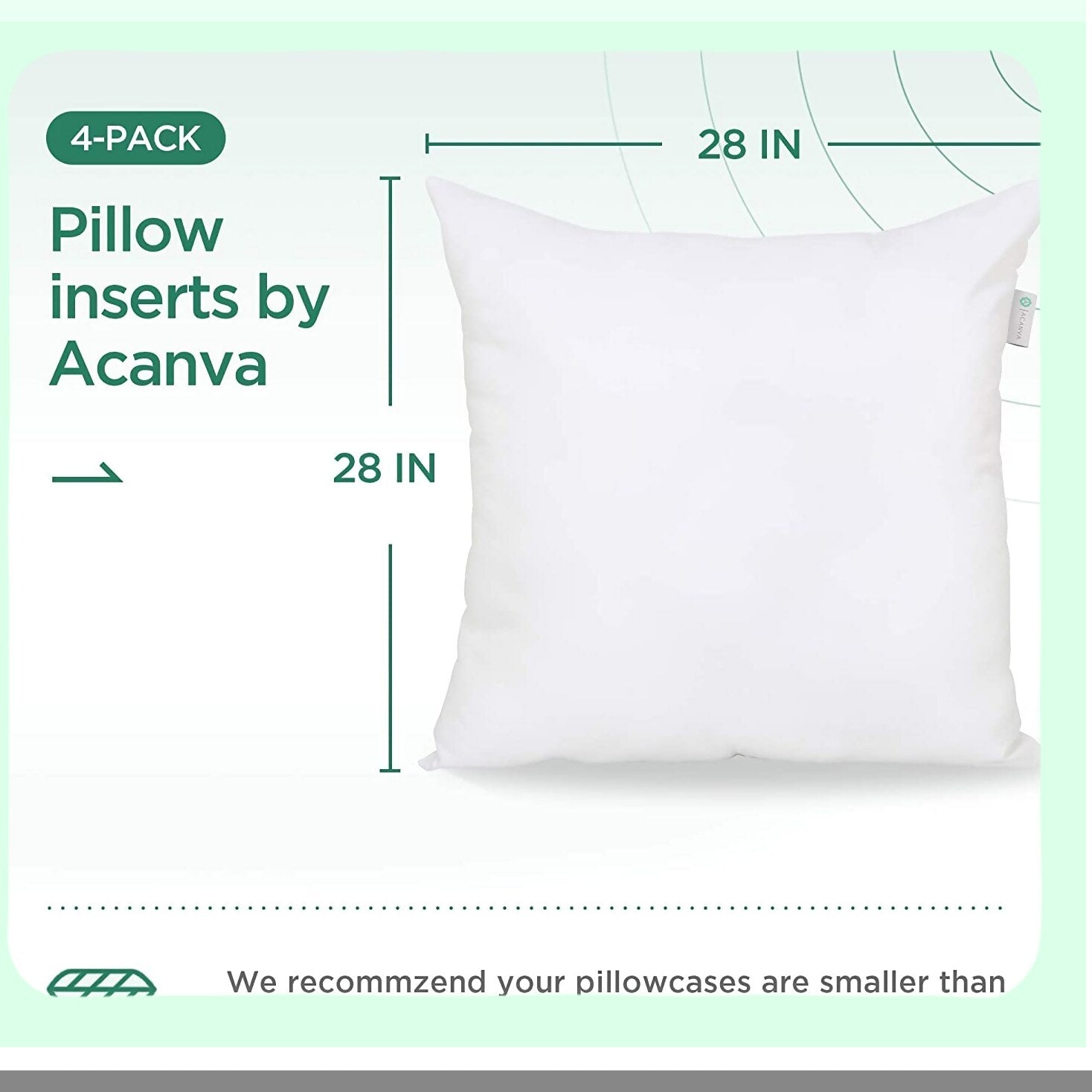 Square Lumbar Support Throw Pillow Inserts - Premium Microfiber Filled Decorative Stuffer for Sofa Bed Couch Chairs - 28x28 Inch White - Set of 4