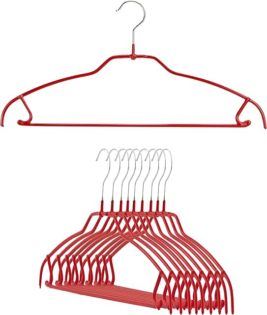 The MAWA Clothes Bar Reston Lloyd Silhouette Ultra-Thin Series offers a practical solution for organizing clothing. These non-slip hangers feature a space-saving design, allowing for efficient use of closet space. Each hanger includes a pant bar and skirt hooks, providing versatile options for hanging different types of garments. The slim profile helps maximize storage capacity without compromising on durability. Designed with a focus on functionality, these hangers are suitable for various clothing items, keeping them securely in place. The pack contains ten hangers in a vibrant red color, making it easy to coordinate and organize your wardrobe. Their sturdy construction ensures long-lasting use, while the non-slip surface prevents clothes from slipping off. Ideal for maintaining a tidy closet, these hangers combine practicality with a sleek, modern look. They are suitable for everyday use and help keep clothing neat and accessible.
