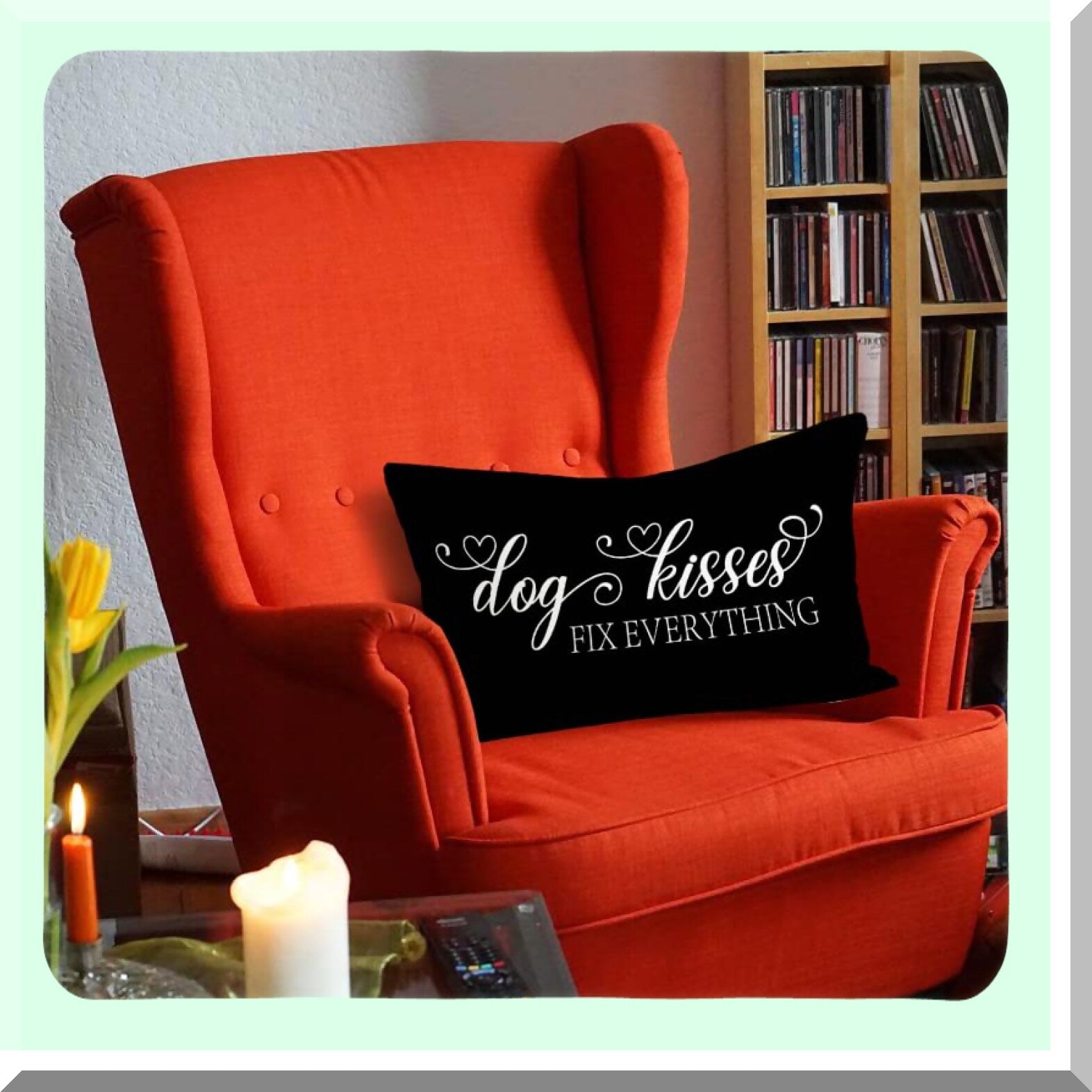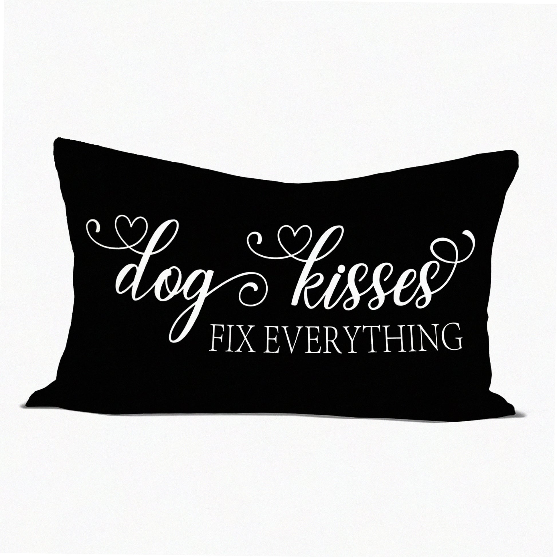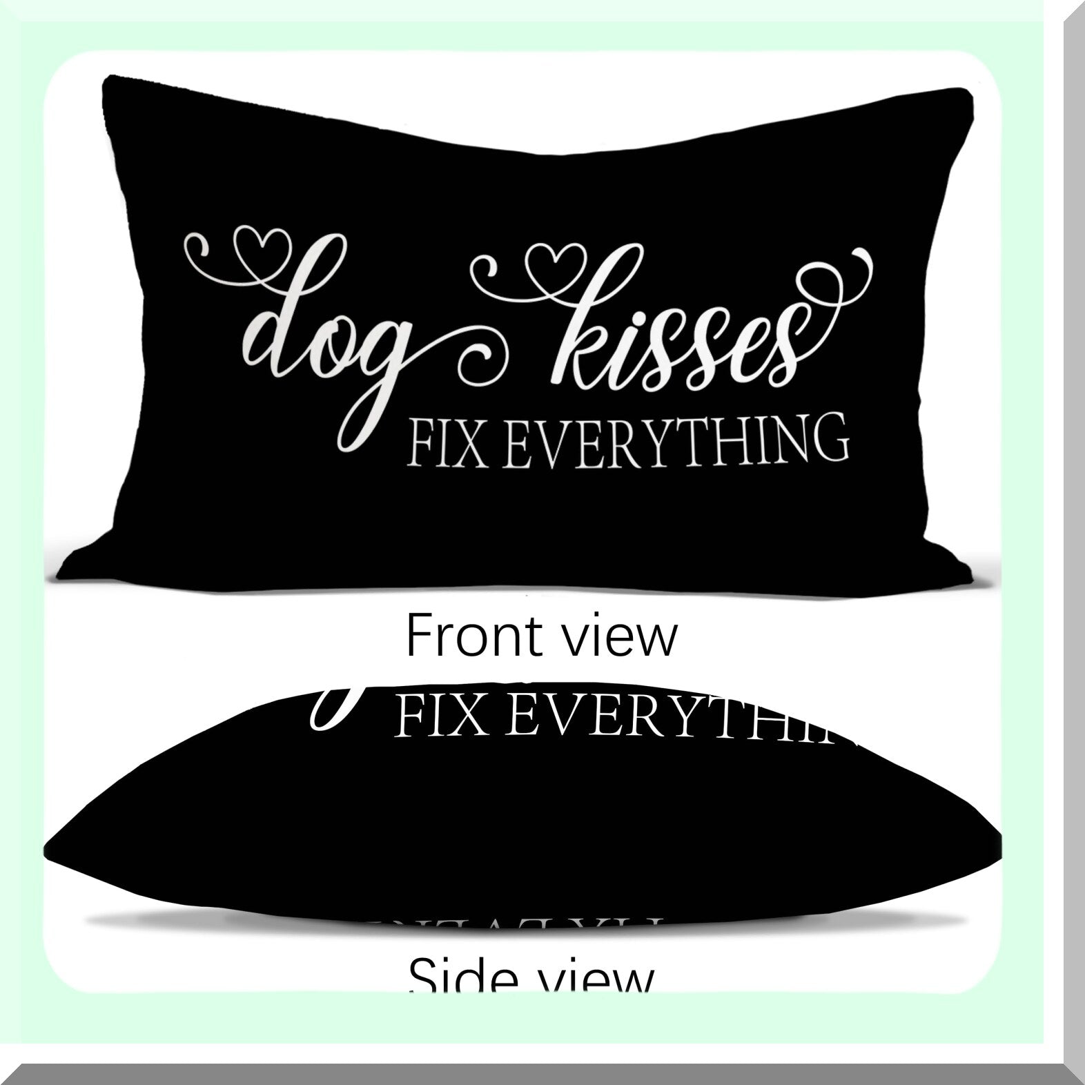 The practical benefits of the dog decorations for the home include adding a touch of humor and cuteness to the living space. The black and white design of the couch pillow covers with the message "Dog Kisses Fix Everything" can bring a sense of joy and comfort to users. The reserved for dog pillow case serves as a reminder of the special place dogs hold in the household. These decorations can enhance the overall ambiance of the home and create a welcoming environment for both residents and visitors.