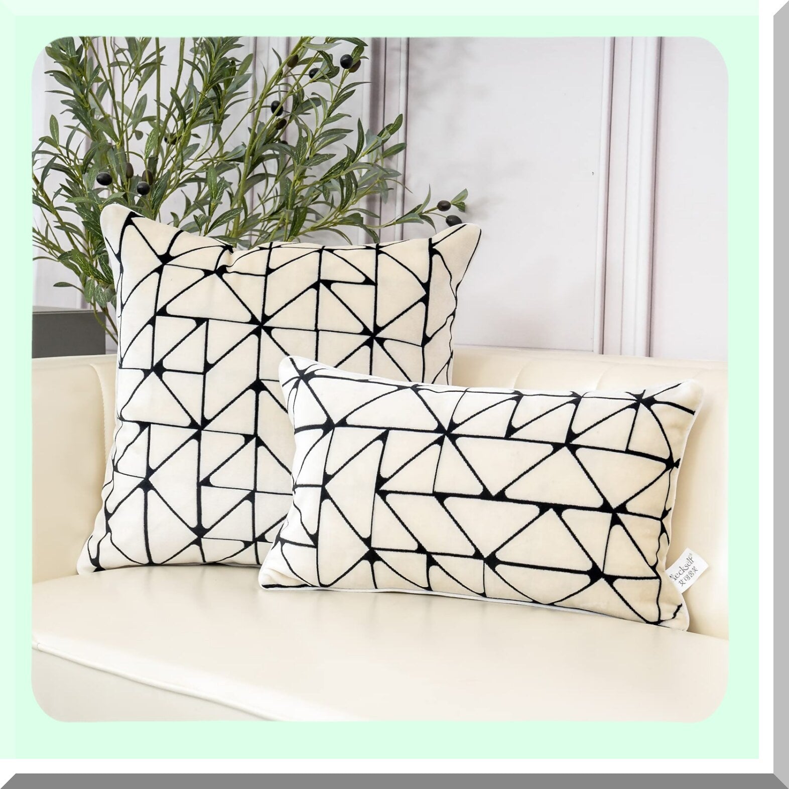 Luxury Geometric Plaid Velvet Lumbar Pillow Cover - Modern Stripes Throw Pillowcase for Couch or Bed - White Black Rectangle Decorative Cushion Case 12x20"