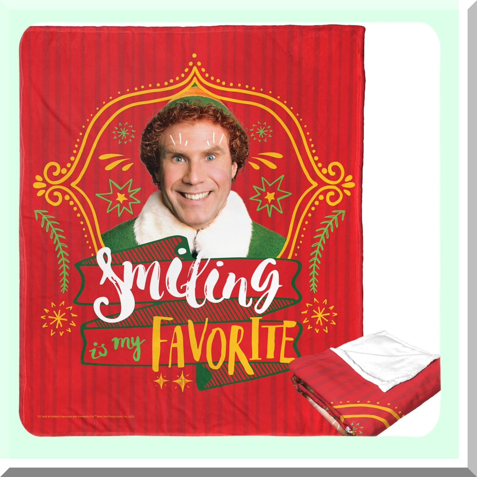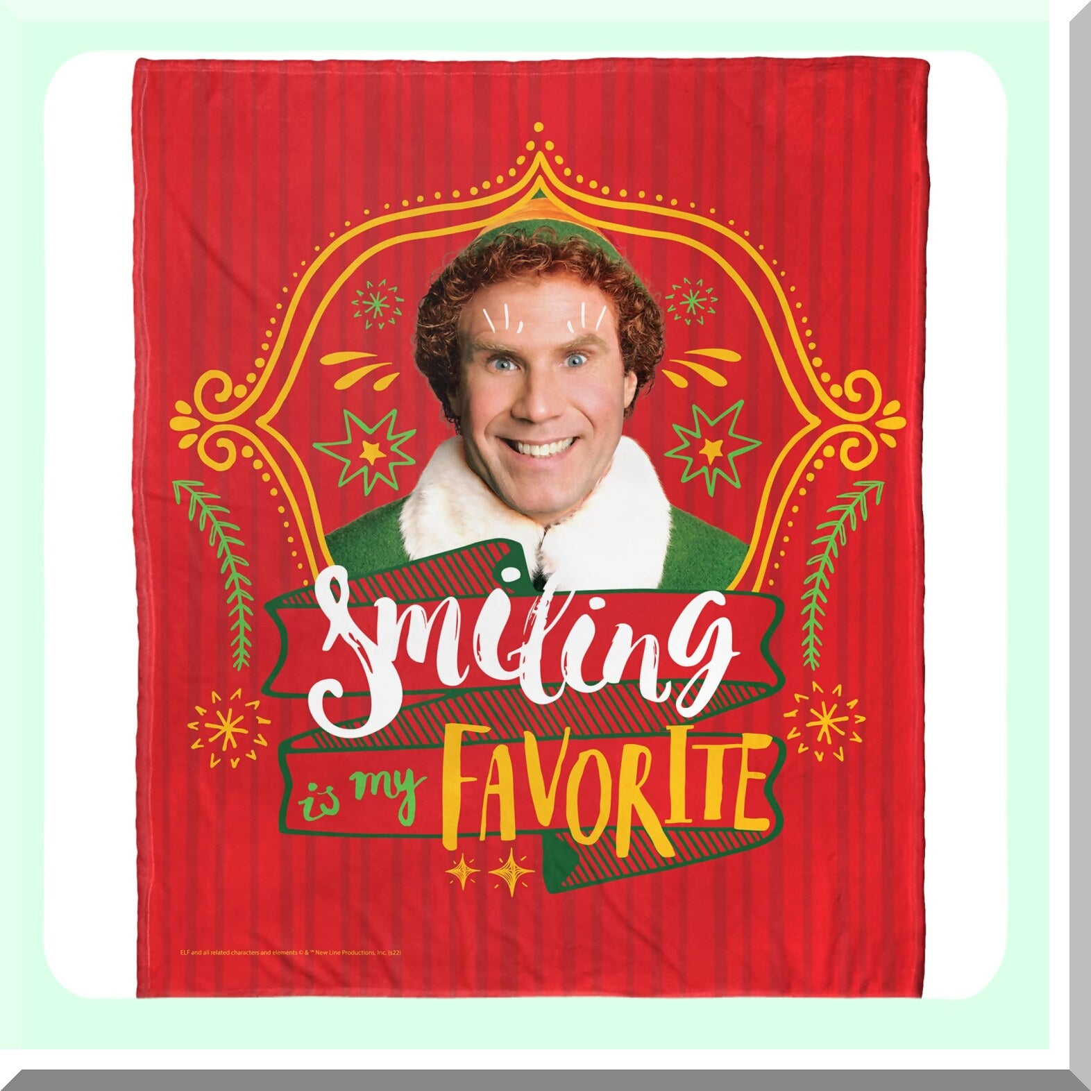 Get cozy with this officially licensed Elf Smiling is My Favorite blanket from TheNorthwest. Made for true fans of Elf, this comfortable throw blanket is the perfect gift for anyone who loves the movie. With a charming design featuring the iconic quote, "Smiling is My Favorite," this blanket is sure to bring a smile to your face every time you use it. Whether you're snuggled up on the couch or adding a touch of whimsy to your bedroom decor, this blanket is a must-have for any Elf enthusiast. Made with high-quality materials for ultimate comfort and durability, this blanket is a unique and fun way to show off your love for the movie.
