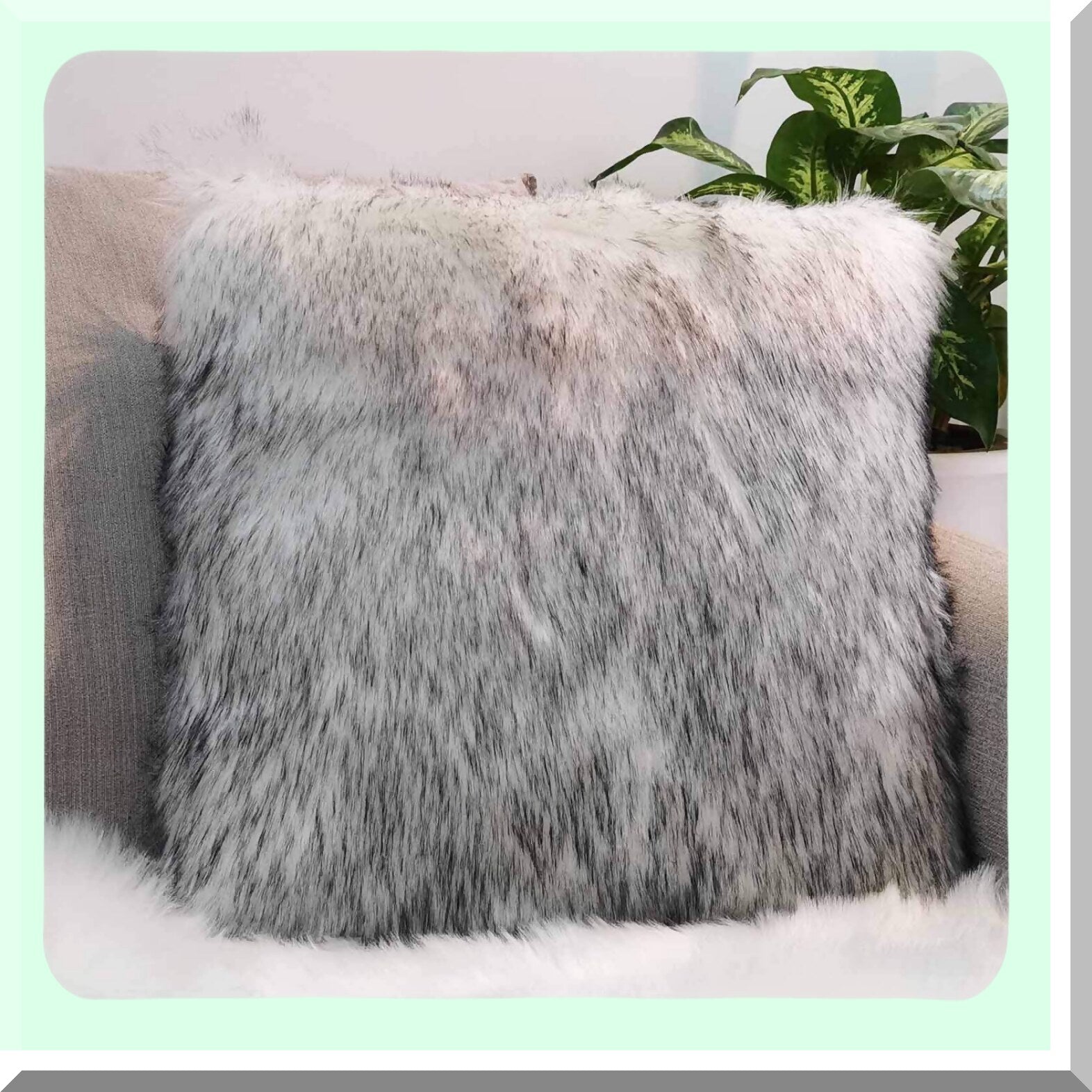 Luxury Plush Black and White Fur Throw Pillow Cover - Soft Faux Fur Cushion Cover for Couch, Sofa, Bed - Decorative Accent Pillow Case 18x18"
