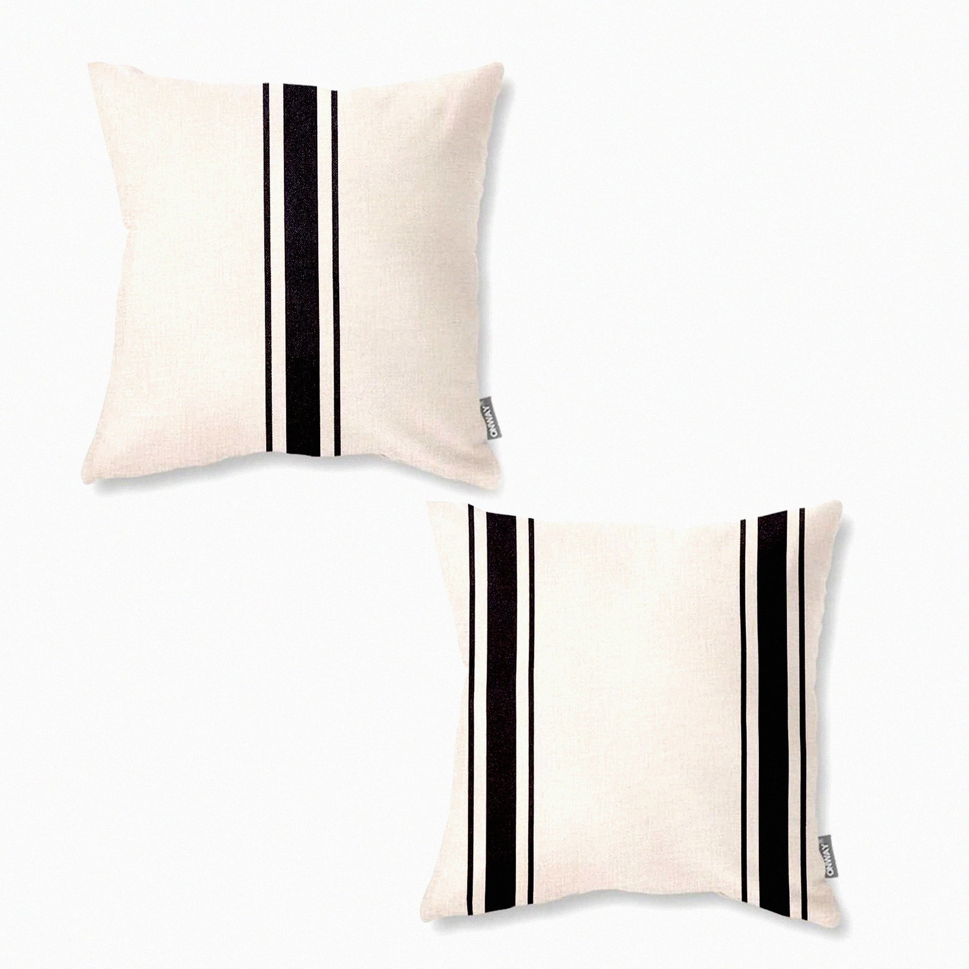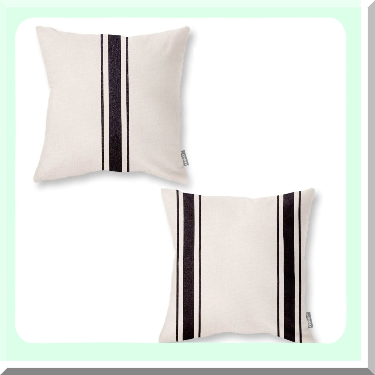 Rustic Farmhouse Black Beige Throw Pillow Covers Set - Indoor Outdoor Decorative Sofa Couch Pillows 18x18 - Home Decor Accent Set of 2