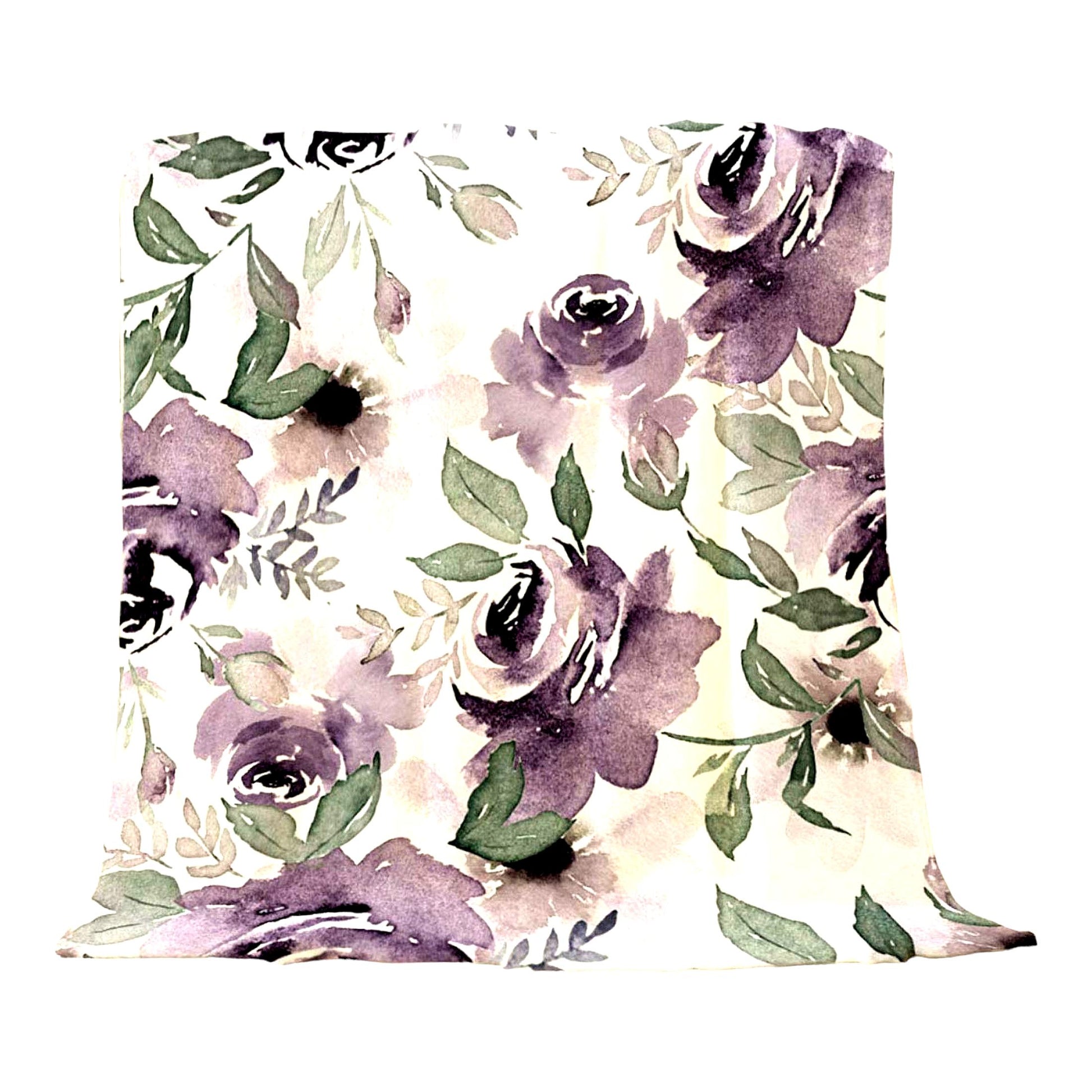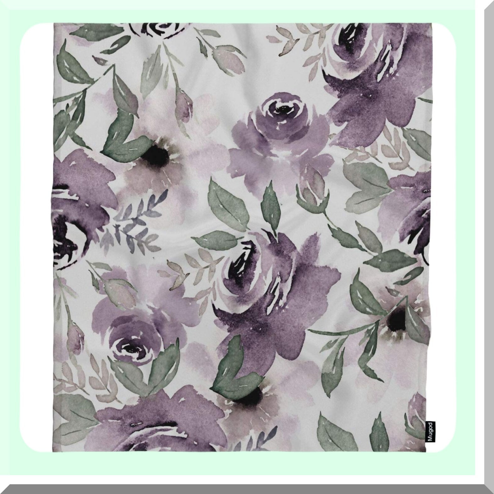 Vintage Purple Floral Watercolor Throw Blanket - Soft Cozy Flannel Plush for Bedding, Sofa, Couch - 50x60 Inch