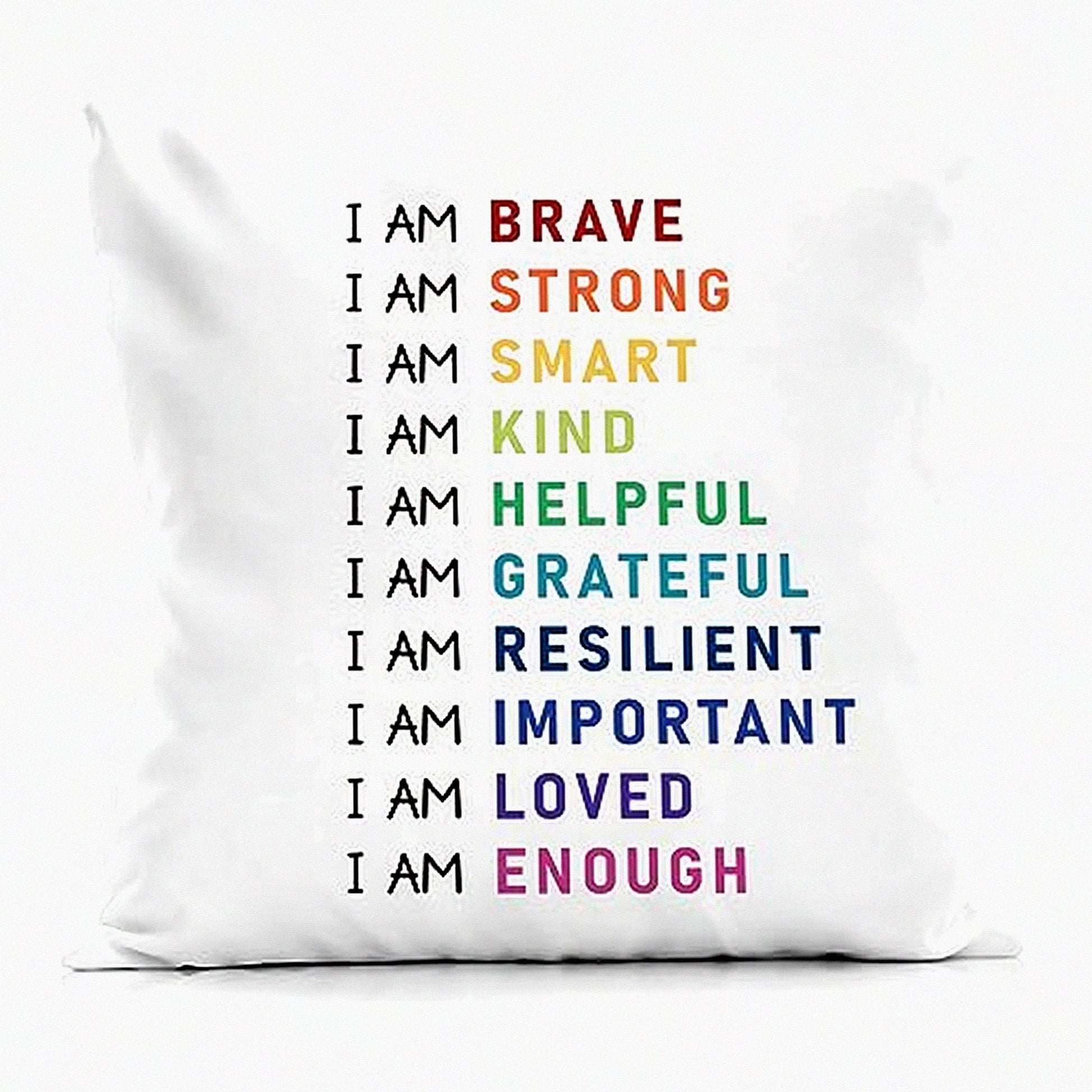 Rainbow Kindness Affirmations Pillowcase - Inspirational Decor for Teens Girls Nursery Room - Positive Affirmations Throw Pillow Cover 18x18 Inch