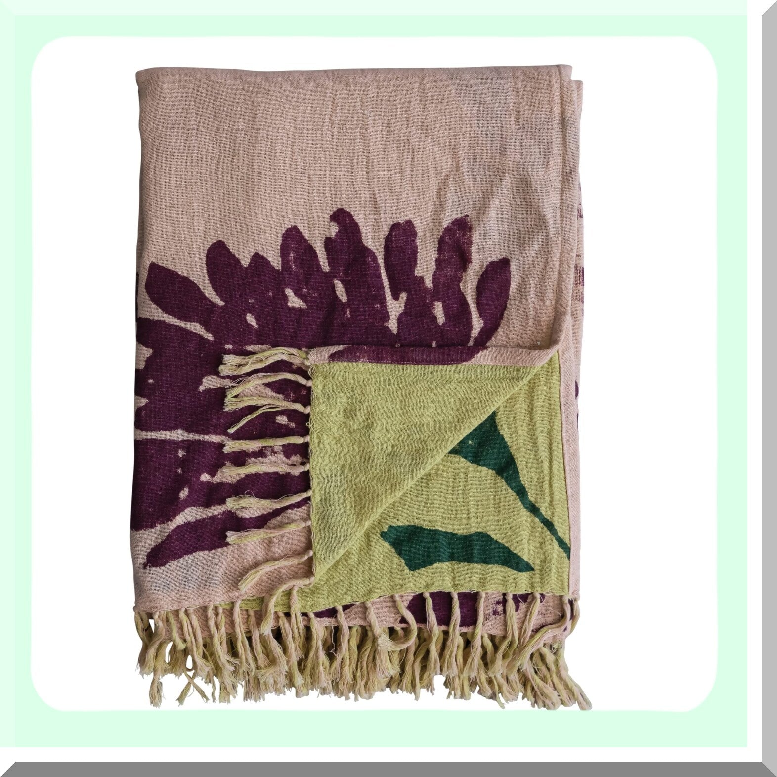 Reversible Cotton Floral Bliss Throw Blanket with Fringe, Multicolor