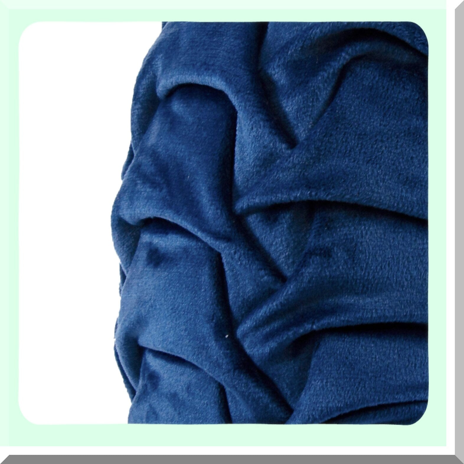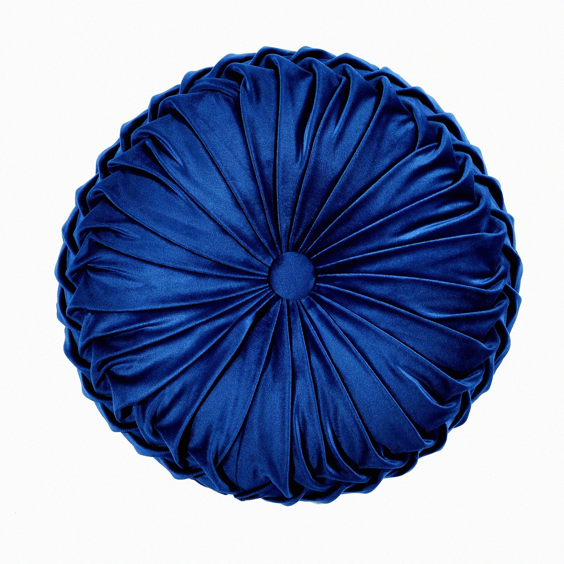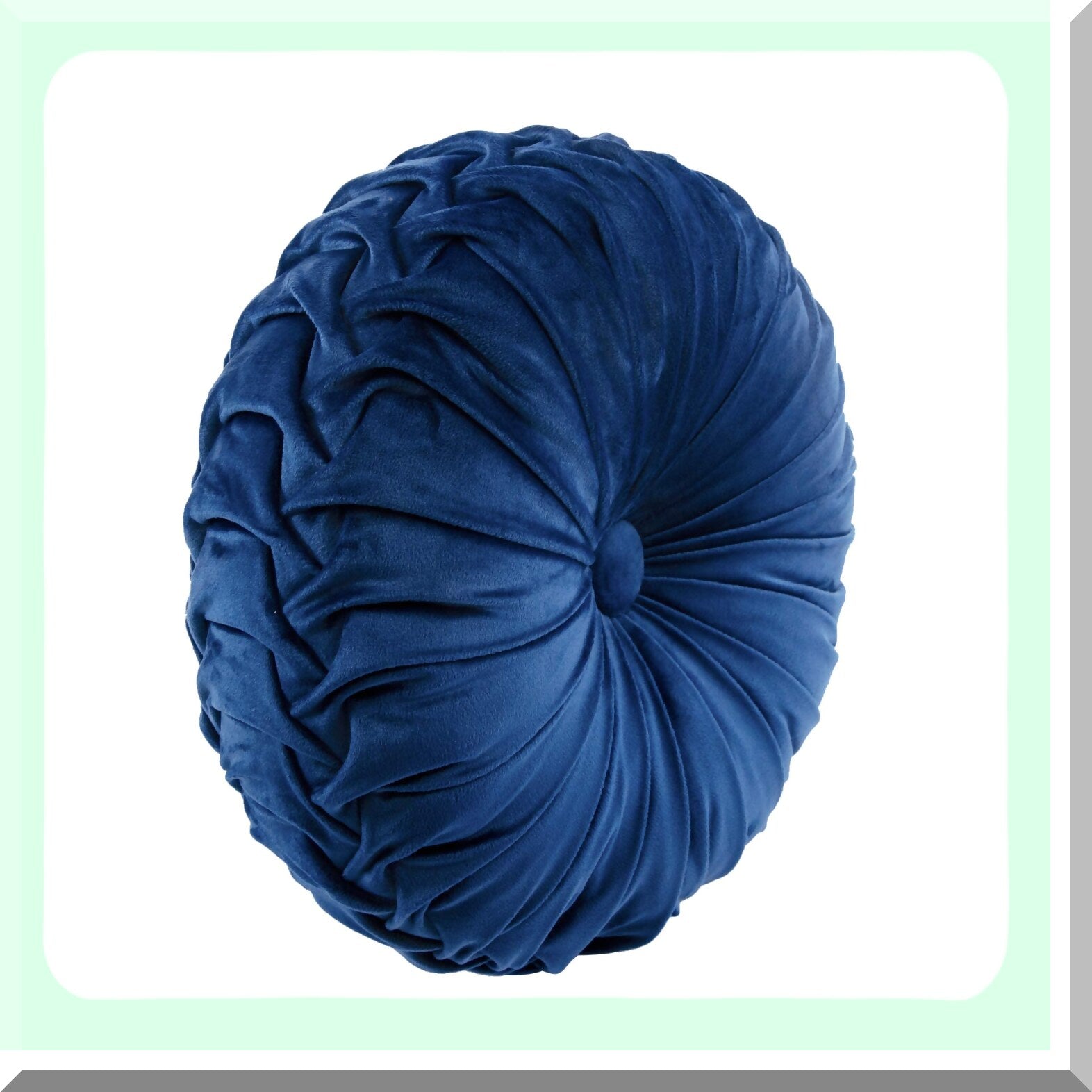 Navy Blue Velvet Round Pleated Throw Pillow - Plush Seat Cushion for Bed, Couch, Chair - Decorative Pillows 15" Diameter - Soft and Stylish Home Decor