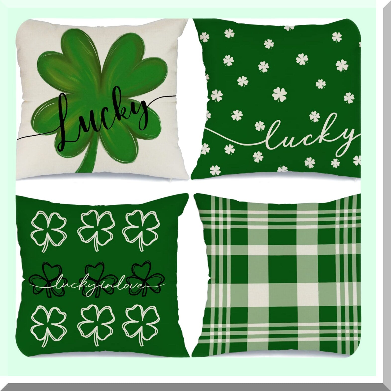 Lucky Clover Farmhouse Pillow Set - St Patricks Day Decor Bundle with Buffalo Plaid Shamrock Throw Pillows - Home Decorative Cushion Covers 18x18 - 4 Pack St Patricks Day Decorations