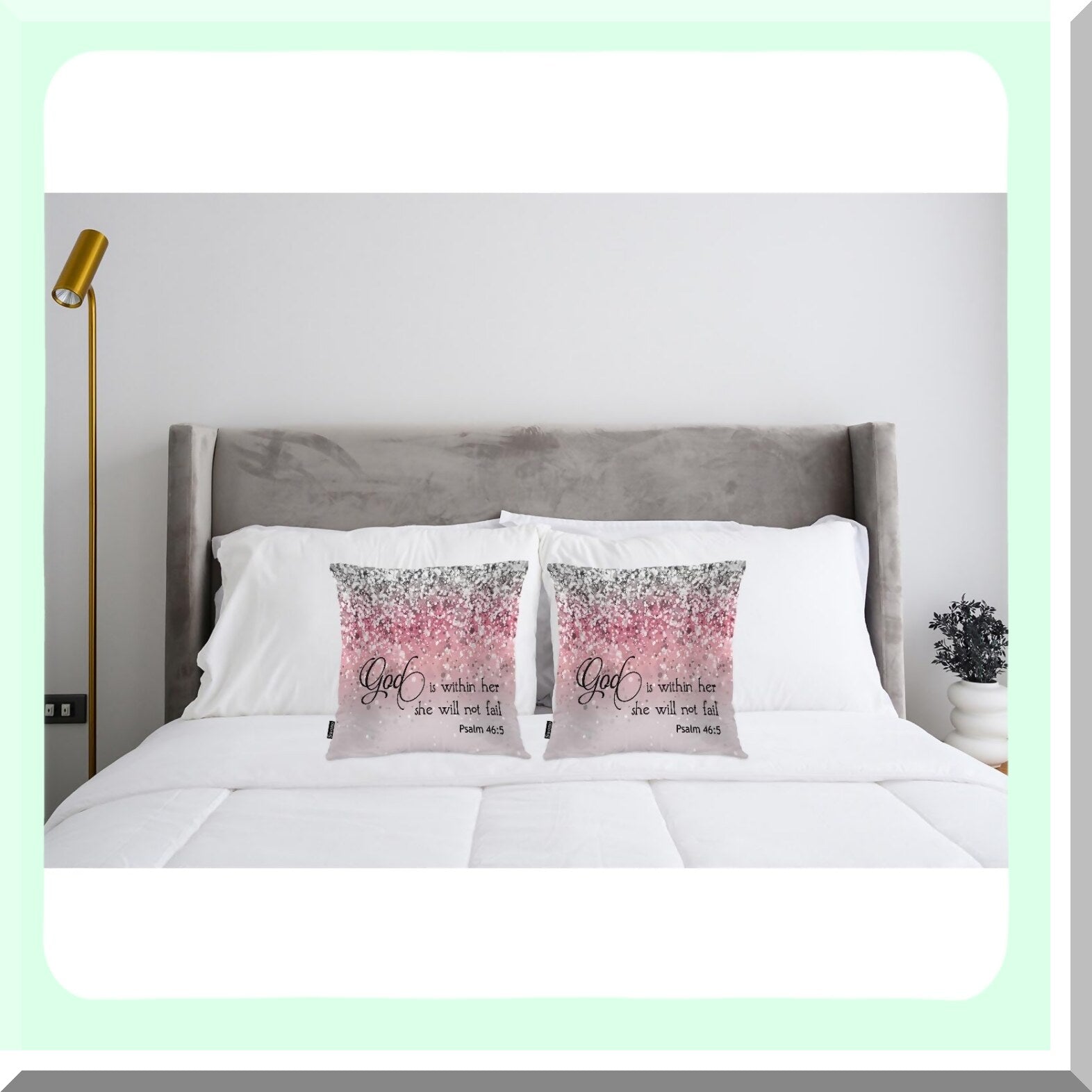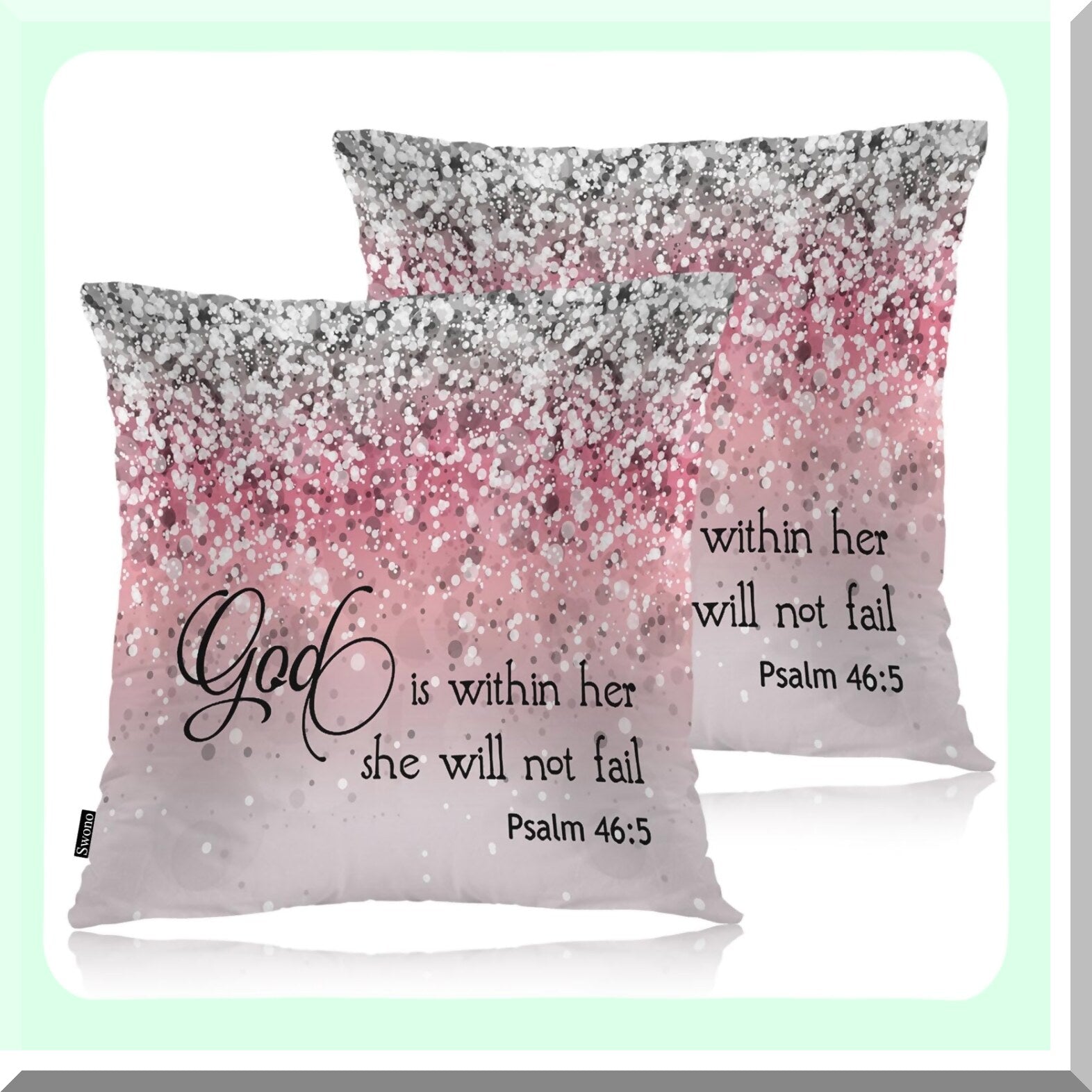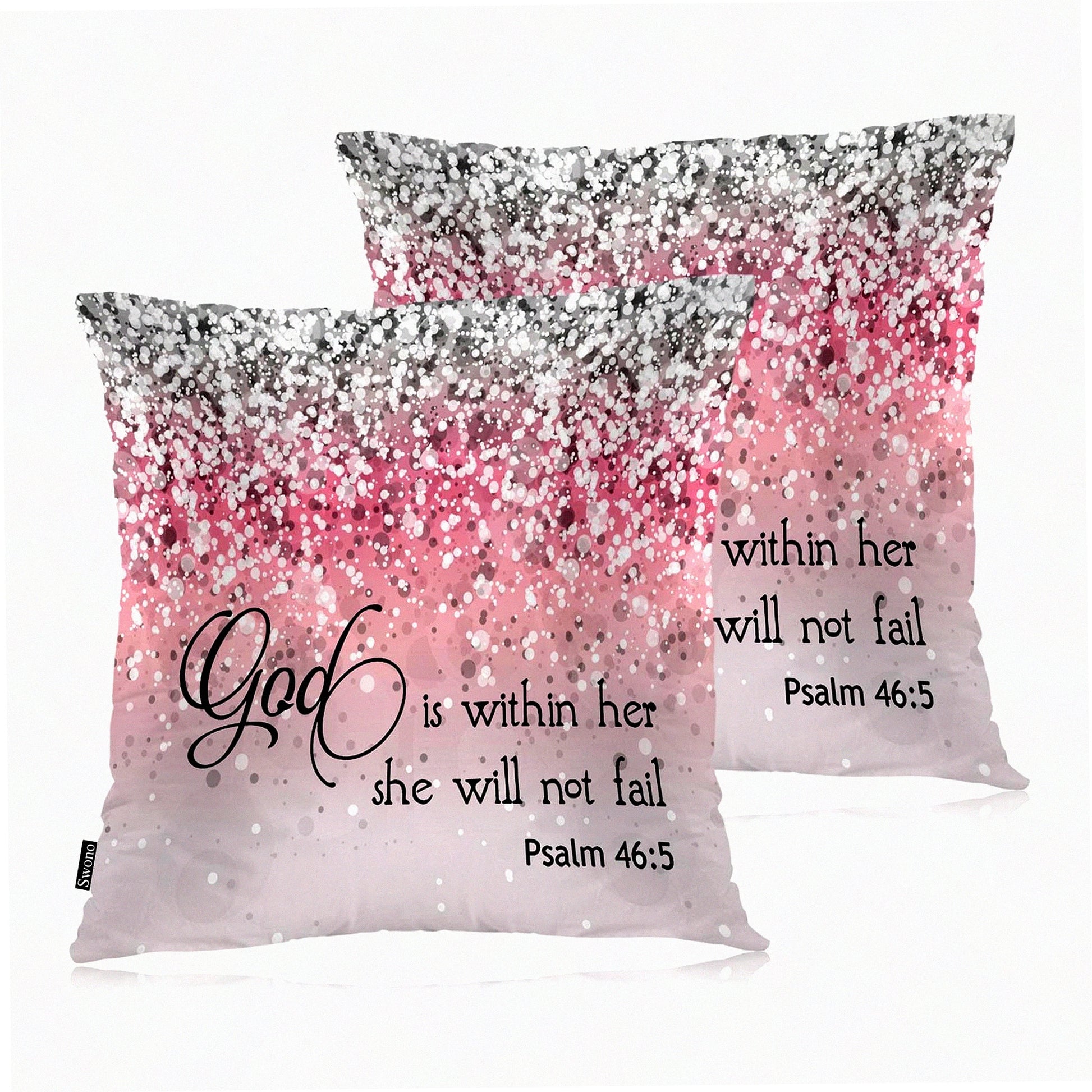 Divine Protection Pillow Covers - Set of 2 Bible Quote Cushion Cases for Home Decor, Sofa, Couch, Bed, Car - 18x18 Inch Glitter Pink Design