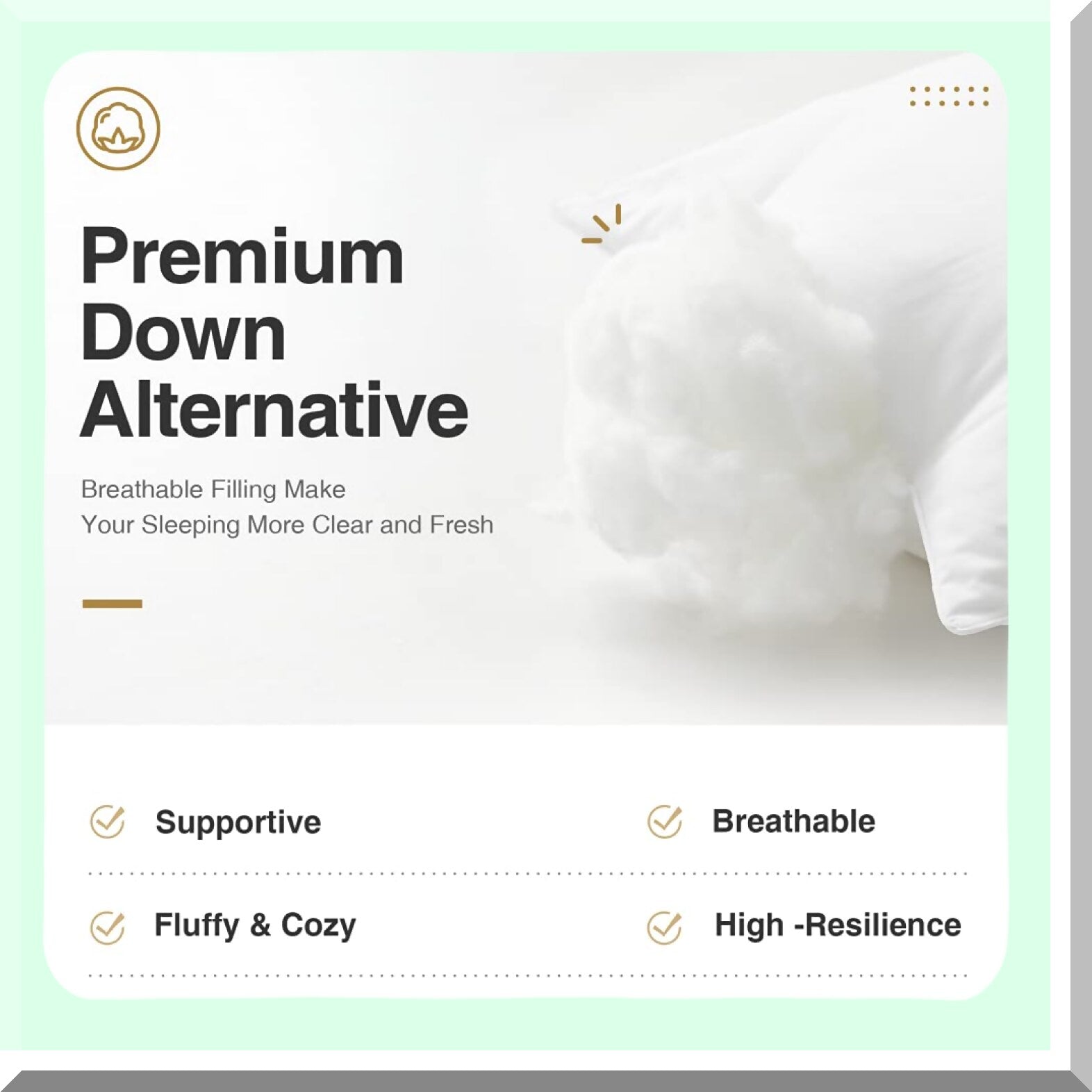 The Down Alternative Plush Pillow is made of ultra-plush 3D down alternative polyester filling, providing a fluffy and supportive surface for the neck and head. It helps reduce neck pain and relieve shoulder stiffness by keeping the neck and head in natural alignment. The quick rebound feature prevents deformation, ensuring long-lasting comfort. This pillow offers practical benefits such as improved sleep quality, reduced discomfort, and overall better neck and shoulder health.