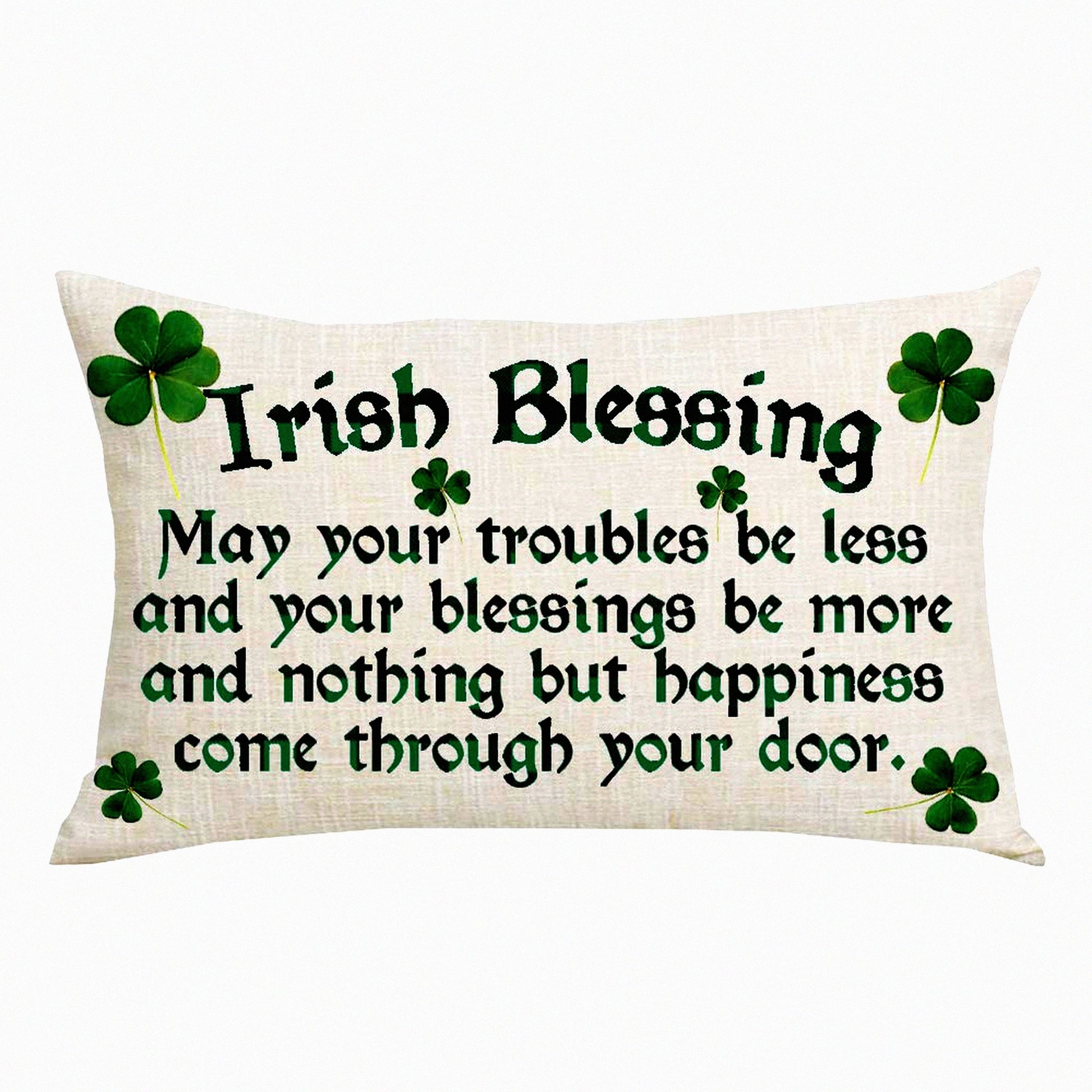 Lucky Clover Blessing Decorative Pillowcase - St. Patrick's Day Spring Home Sofa Chair Bed Decoration - Green Quote Cotton Linen Throw Pillow Cover - 12 x 20 Inches