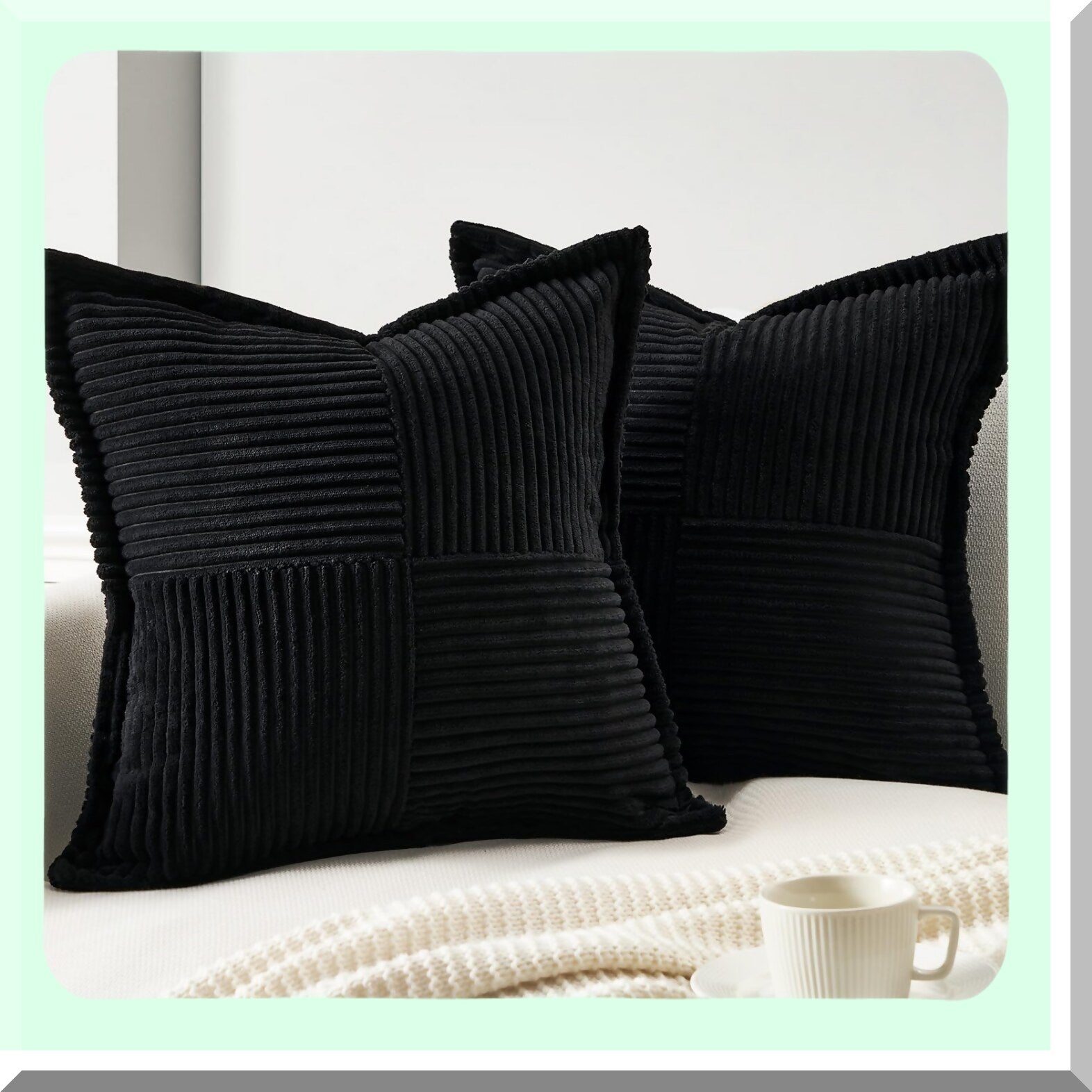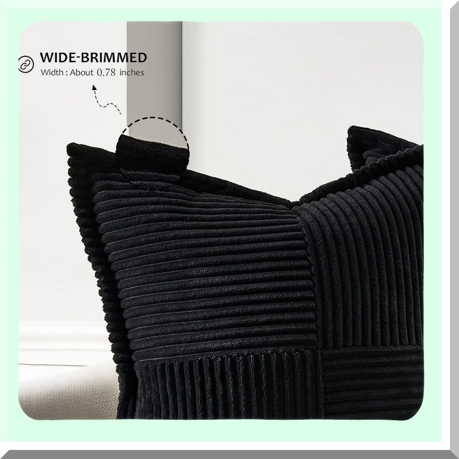 Boho Chic Corduroy Pillow Covers - Set of 2, Western Boucle Striped Cushion Cases for Living Room Decor - Fluffy Black Throw Pillows 18x18