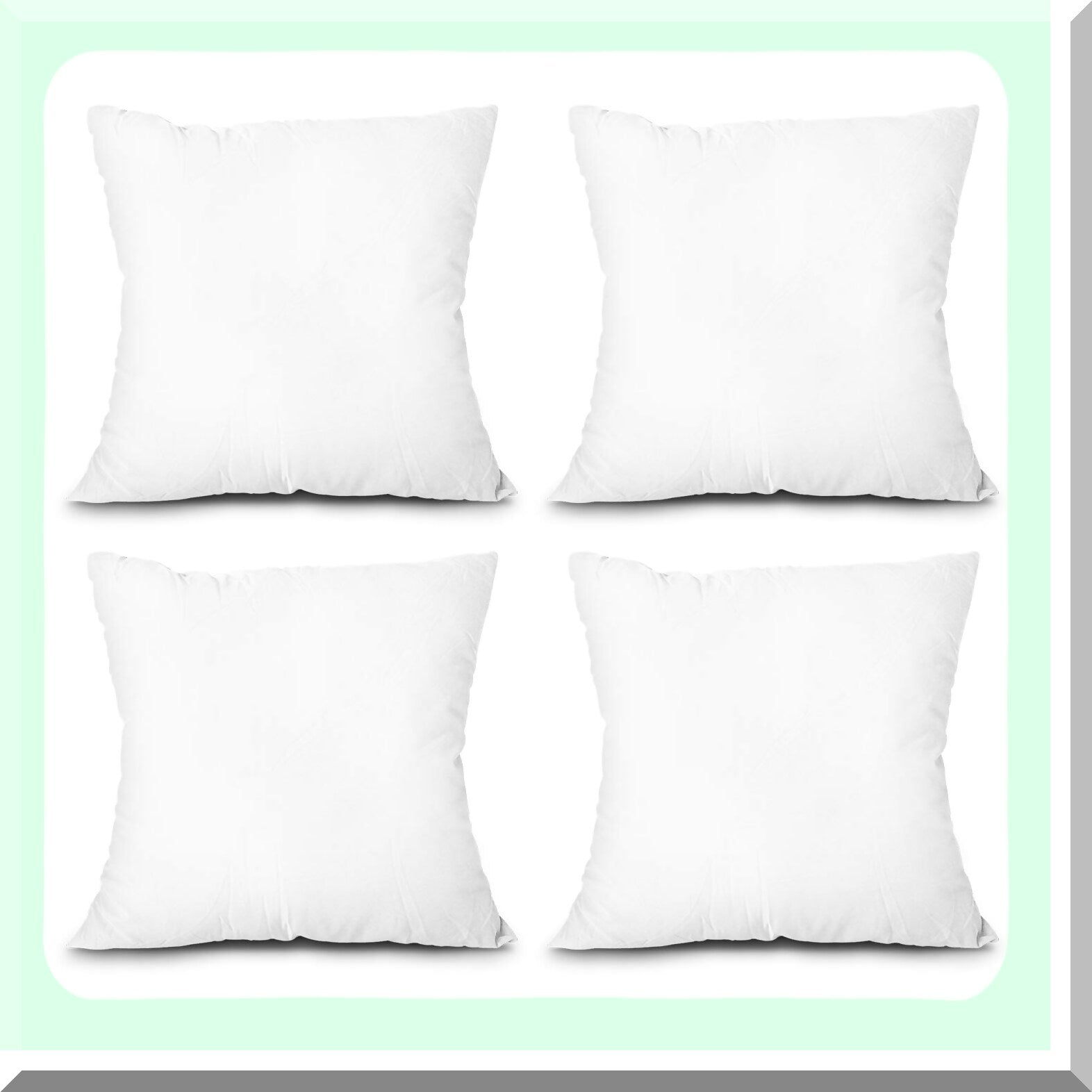 Luxury Plush Pillow Inserts - Set of 4 Hypoallergenic Down Alternative Cushions for Couch, Sofa, Bed - 18x18 Inch Square Sham Stuffers - Machine Washable & Fluffy White Pillows