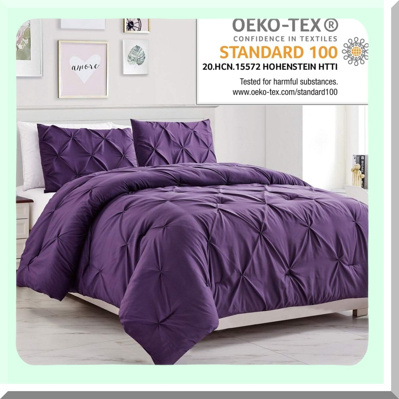 Purple Dream Comforter Set - Queen Size Microfiber Bedding with Pinch Pleat Pintuck Design, Down Alternative Fill for All Season Bedroom Decor - JN1 Dark Purple