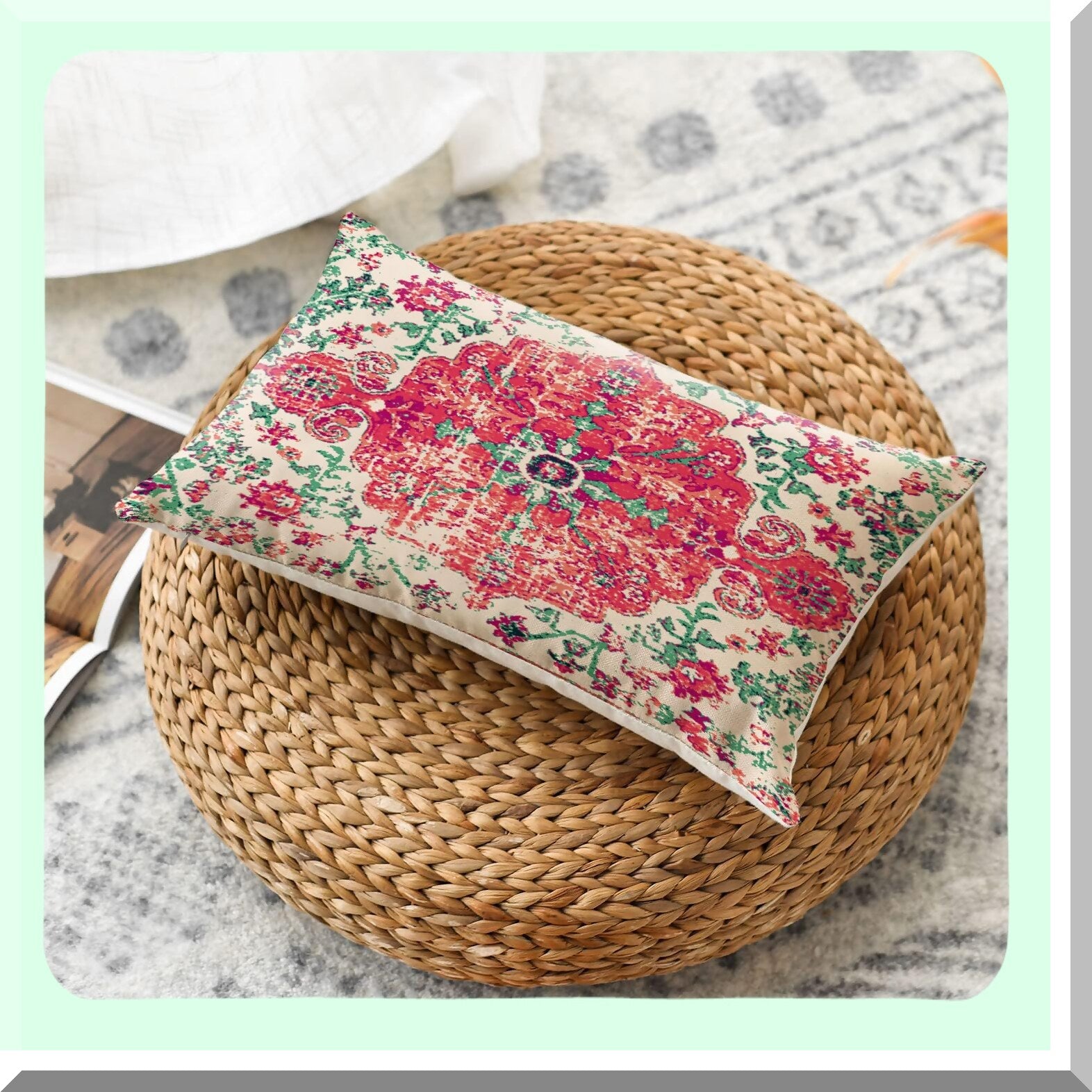 Boho Farmhouse Lumbar Pillow Covers Set - Vintage Rust Coral Cushion Covers for Couch & Outdoor Decor - Red Pink Throw Pillows for Living Room
