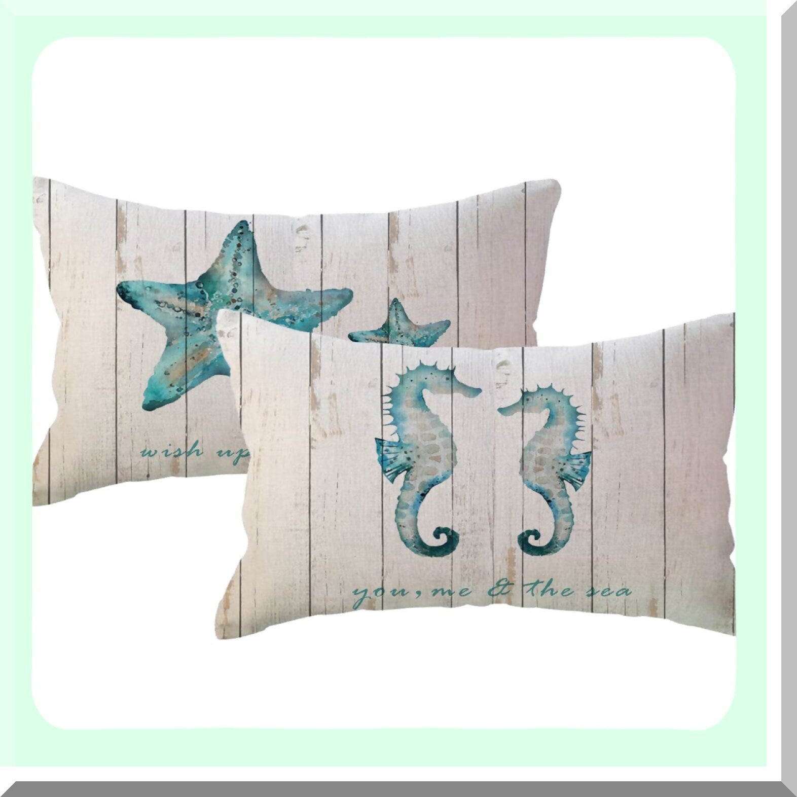 These lumbar pillow covers offer practical benefits for beach house decor. The summer ocean theme with wood grain, starfish, and hippocampus designs adds a coastal aesthetic. The inclusion of quotes enhances the decorative appeal. Measuring 12x20 inches, they are suitable for rectangular or waist pillows, providing comfort and support. The set of 2 allows for coordinated styling in multiple areas.
