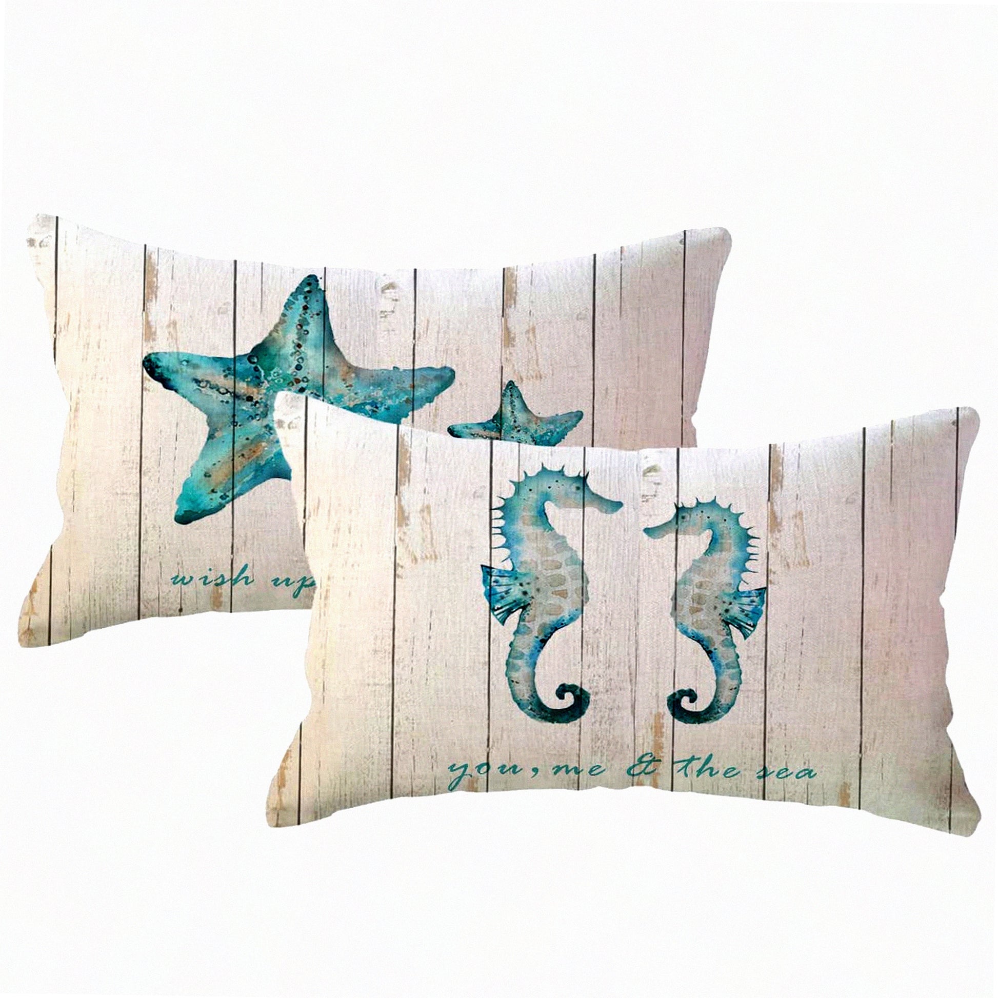 Ocean Breeze Lumbar Pillow Covers - Coastal Decorative Rectangular Pillowcases with Starfish and Quotes - Beach House Decor Cushion Covers Set of 2