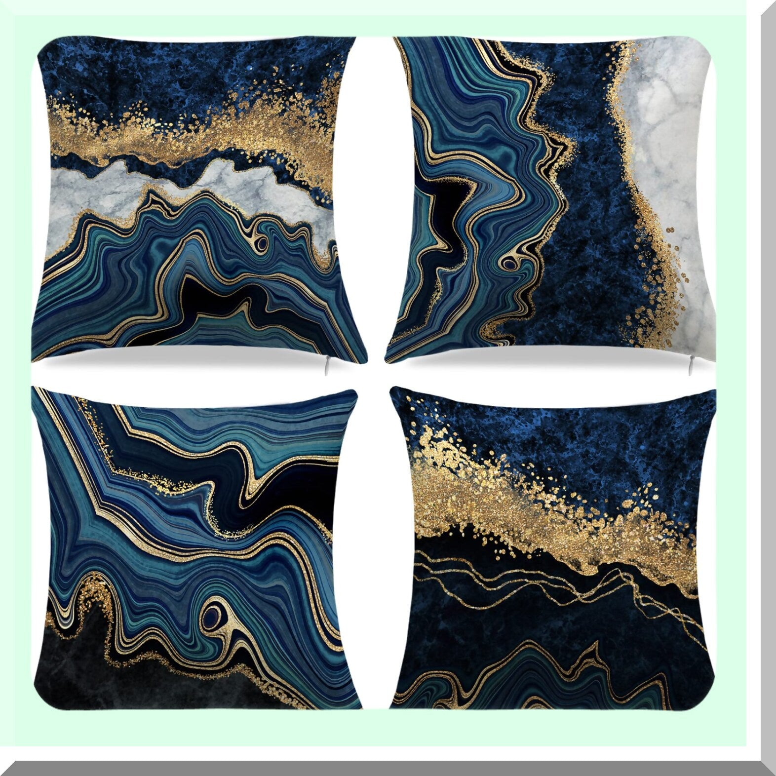 Blue Gold Marble Abstract Pillow Covers - Set of 4 - 18" x 18" - Decorative Cushion Covers for Sofa Living Room Couch - Home Decor Throw Pillowcases