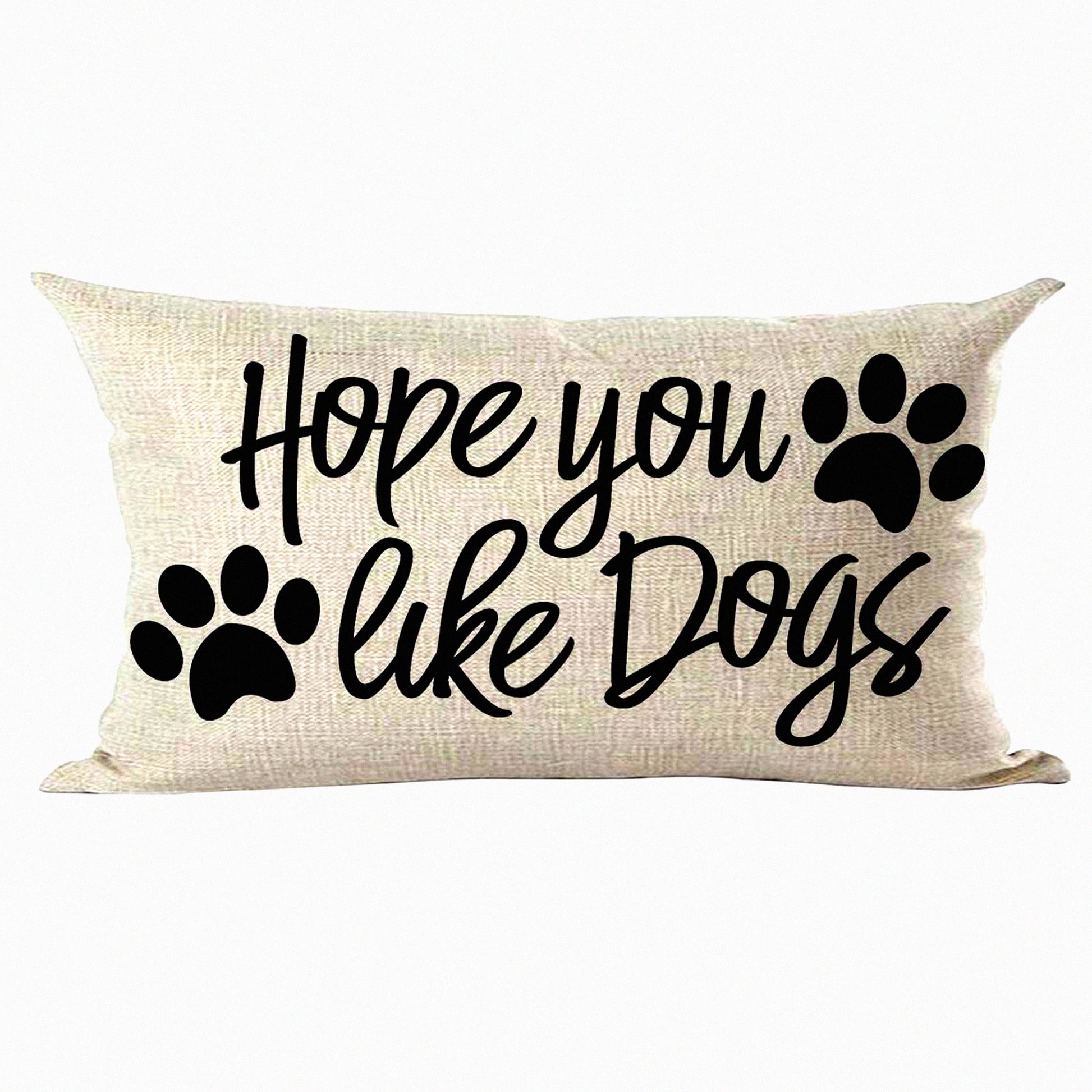 The Black Word Art Quote Hope You Like Dogs Paw Prints Inspirational Decorative Lumbar Throw Pillow Cover is made of cotton linen and measures 12 x 20 inches (30 x 50 cm). It offers a stylish and inspirational design with a dog-themed quote and paw prints, making it a perfect decorative addition to any space. The cover is practical for lumbar support and adds a personal touch to home decor. Note that there may be a slight size variation of 1-2 cm.