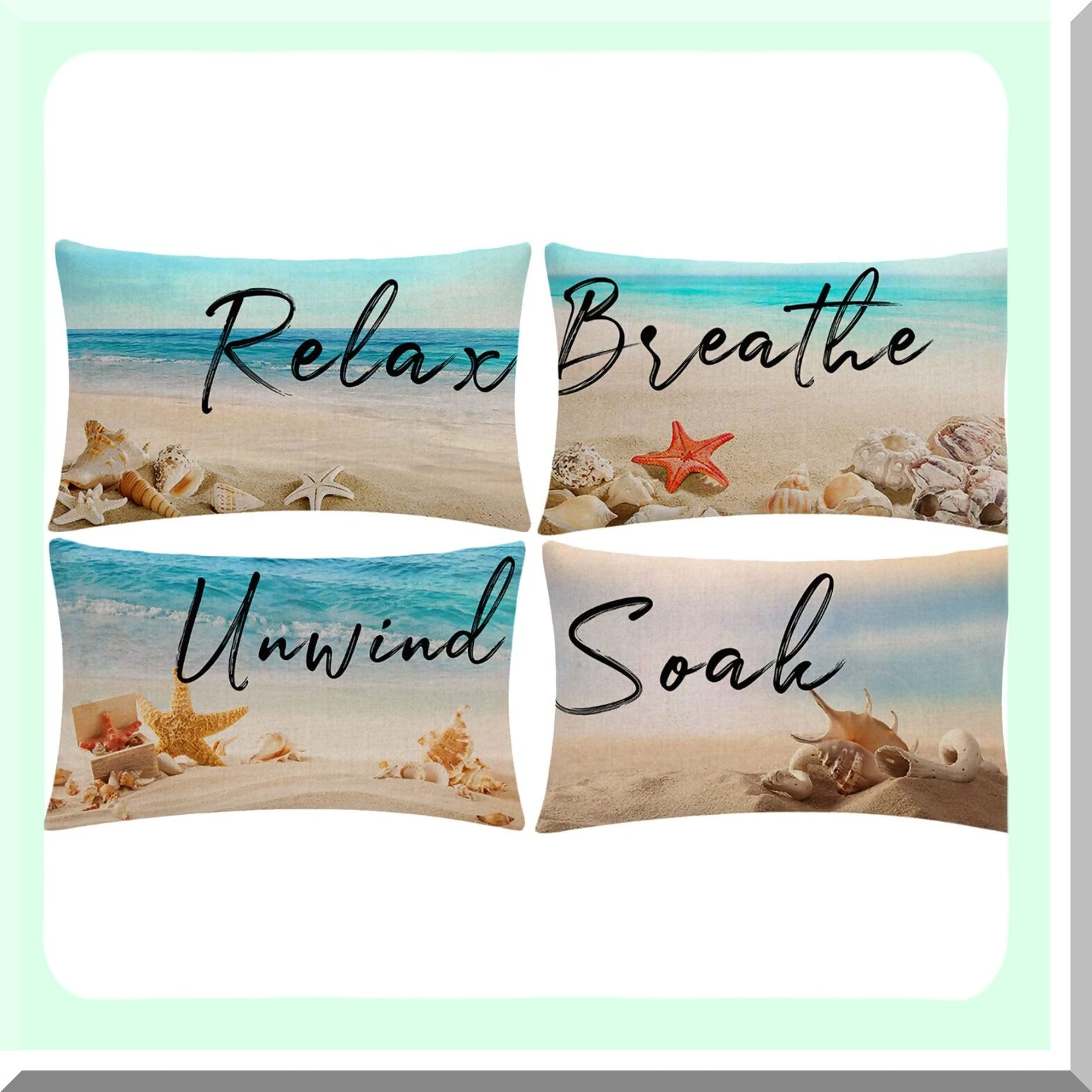 Ocean Breeze Coastal Pillow Covers - Set of 4 Blue Sea Starfish Cushion Cases for Summer Beach Theme Home Decor 12" x 20" Sofa Couch Chair Outdoor