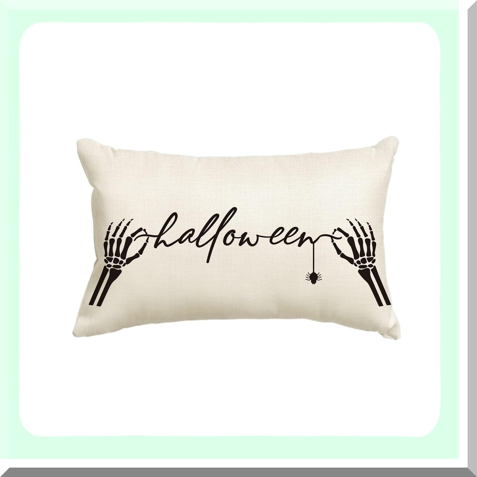 Spooky Skeleton Hand Spider Decorative Pillow Covers - Set of 2, Black and White 12x20 Inch Throw Pillow Cases for Home Sofa Couch Halloween Theme
