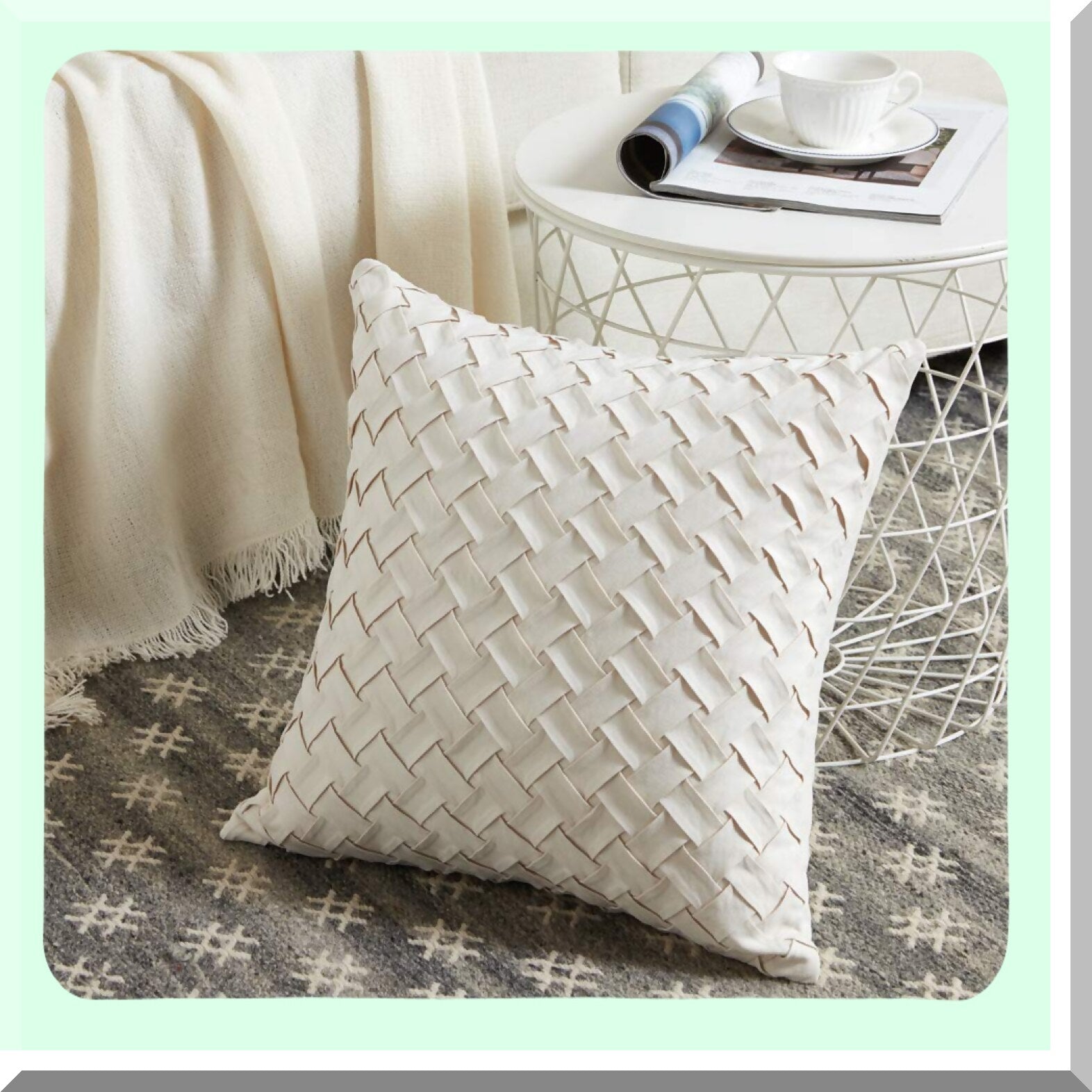 Boho Chic Basket Weave Pillow Covers - Soft Suede Accent Cushion Cases for Home Decor - Cream Square Throw Pillow Set for Couch, Sofa, Bedroom, Car - 18x18 inch Square Pillow Covers