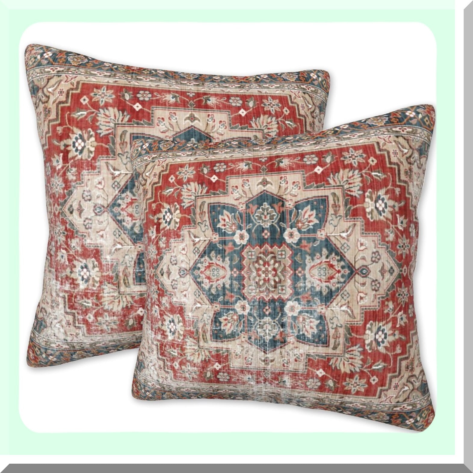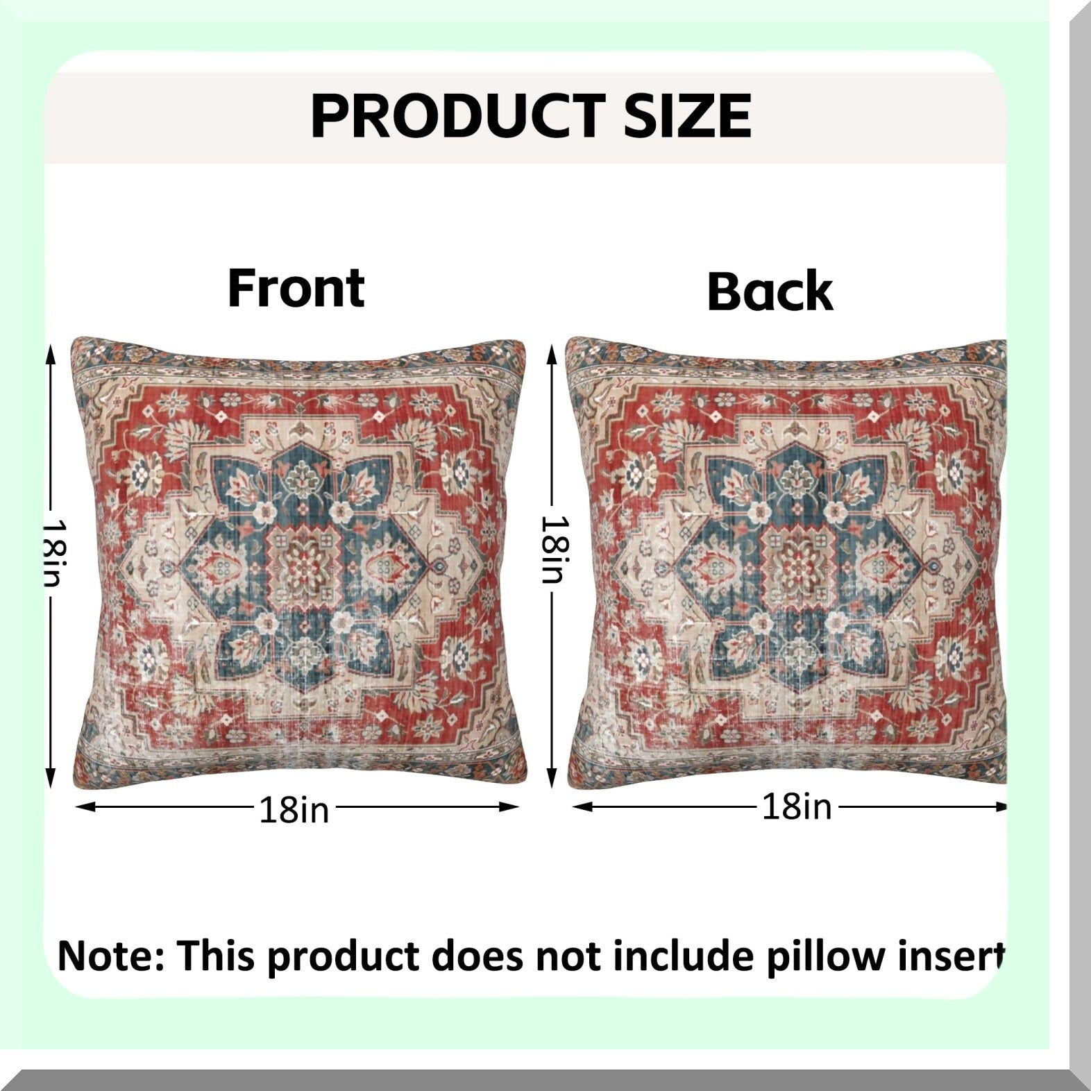 Boho Vintage Carpet Pillow Covers - Set of 2 Soft 18x18 Inch Red Blue Modern Home Decor for Couch Bed Sofa - Throw Pillow Cases