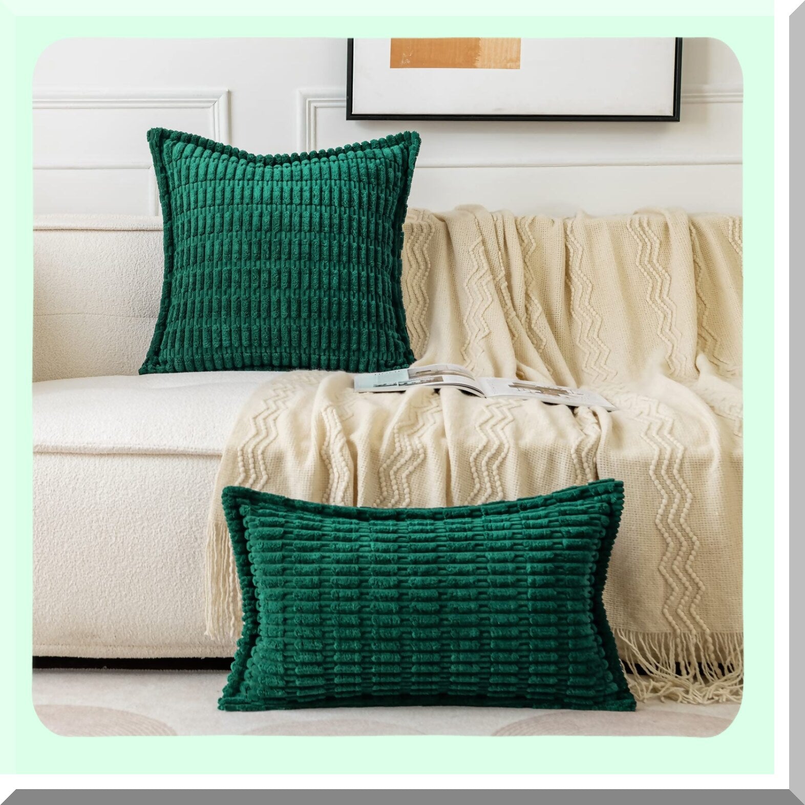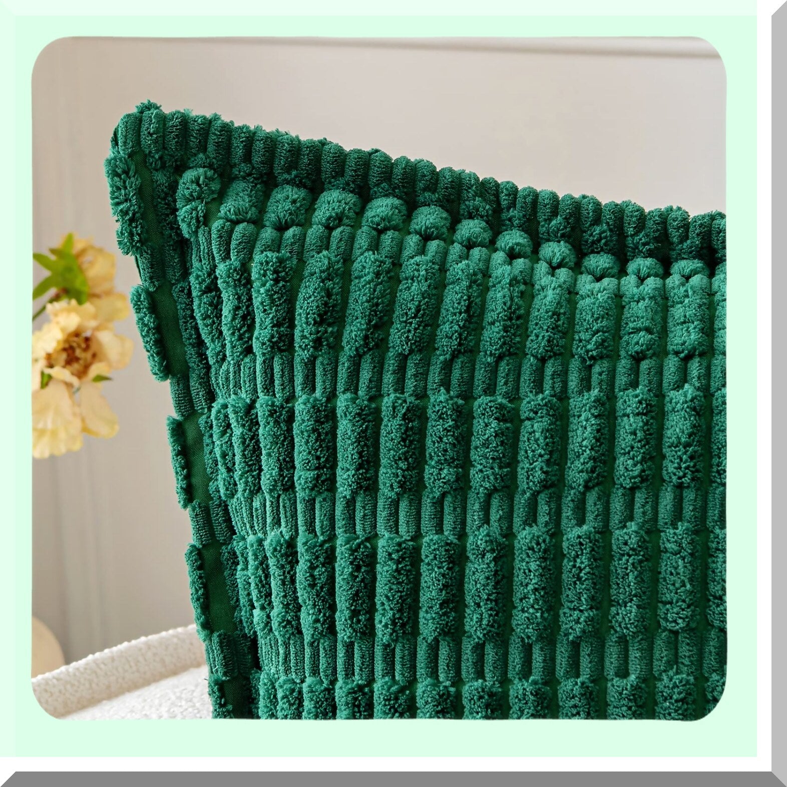 Striped Boho Corduroy Pillow Covers - Set of 2 | Soft Decorative Cushion Cases for Couch, Sofa, Bed | Modern Spring Home Decor - 16x16 Inch
