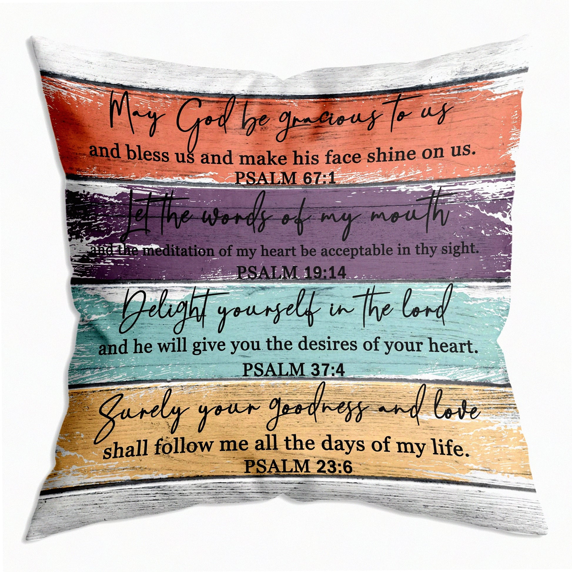 Christian Verse Wood Grain Throw Pillow Cover - Inspirational Scripture Cushion Decor for Sofa 18x18 inch - Housewarming Gift - Church Gifts for Women