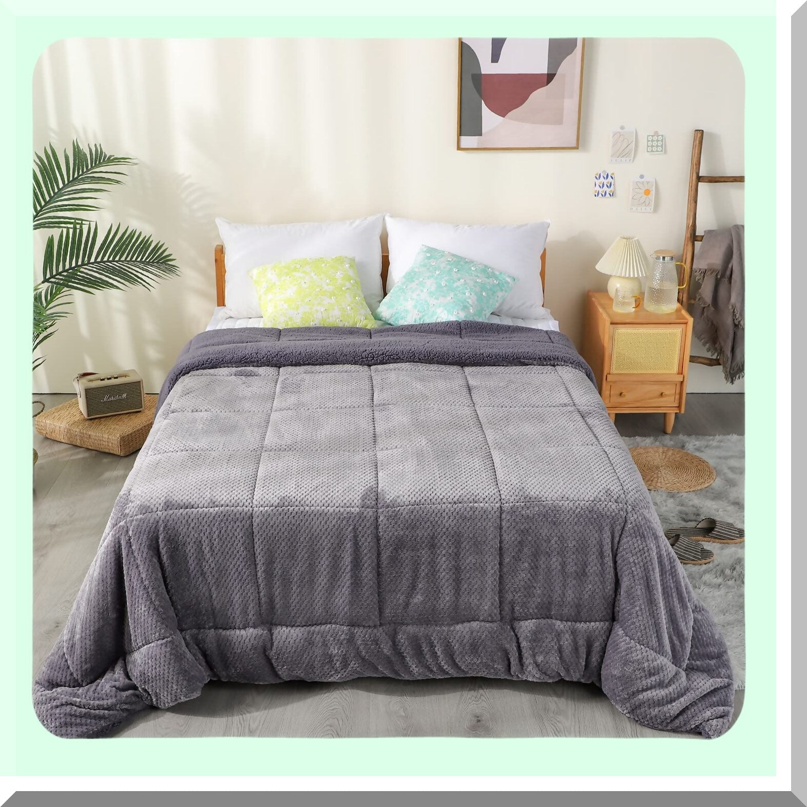 Plush Sherpa Flannel Fleece Comforter - Twin Size Bedding Coverlet - Textured Blanket - Winter Warmth - Machine Washable - Luxurious Grey Blanket (68X90)