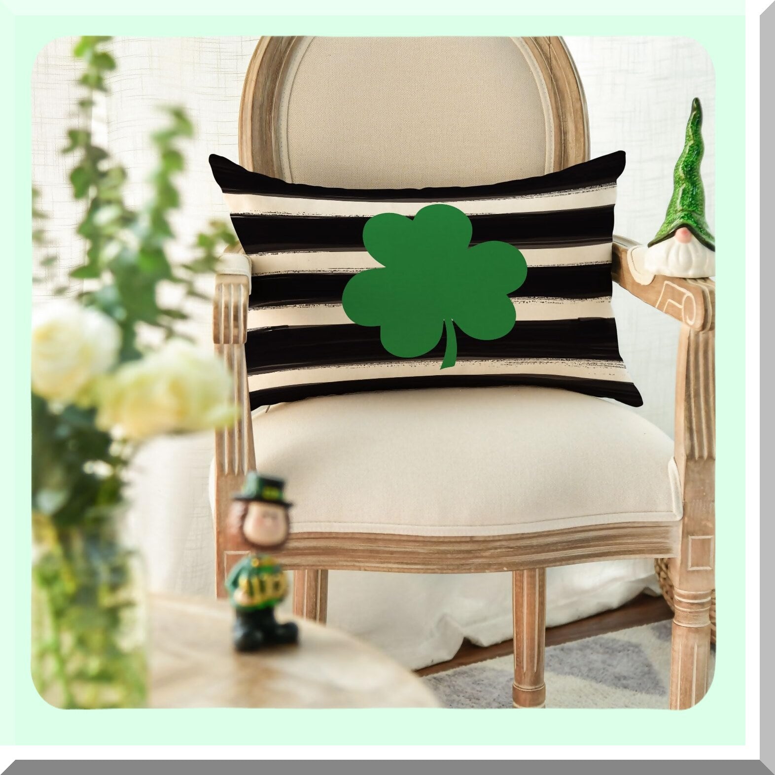 Clover Stripe Shamrock Pillow Cover - St Patricks Day Decorative Cushion Case for Sofa Couch, 12x20 Inch Black Decoration