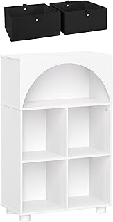 The RiverRidge Arched Entryway Shoe Storage Cabinet features a stylish curved design and offers practical storage solutions for your hallway or entryway. It includes four spacious cubbies and additional shelves, providing ample space to organize shoes, accessories, and other essentials. The cabinet is finished in a clean white color, complementing various home decor styles. Two 5-inch black cubby storage bins are included, offering versatile options for organizing smaller items. The arched top adds an elegant touch to the overall design, making it a functional and attractive addition to your home. Its compact size makes it suitable for various spaces, helping to keep your entryway tidy and organized. The sturdy construction ensures durability, while the multiple storage compartments provide easy access to your belongings. This versatile storage unit is ideal for maintaining a neat and welcoming entryway or hallway area.