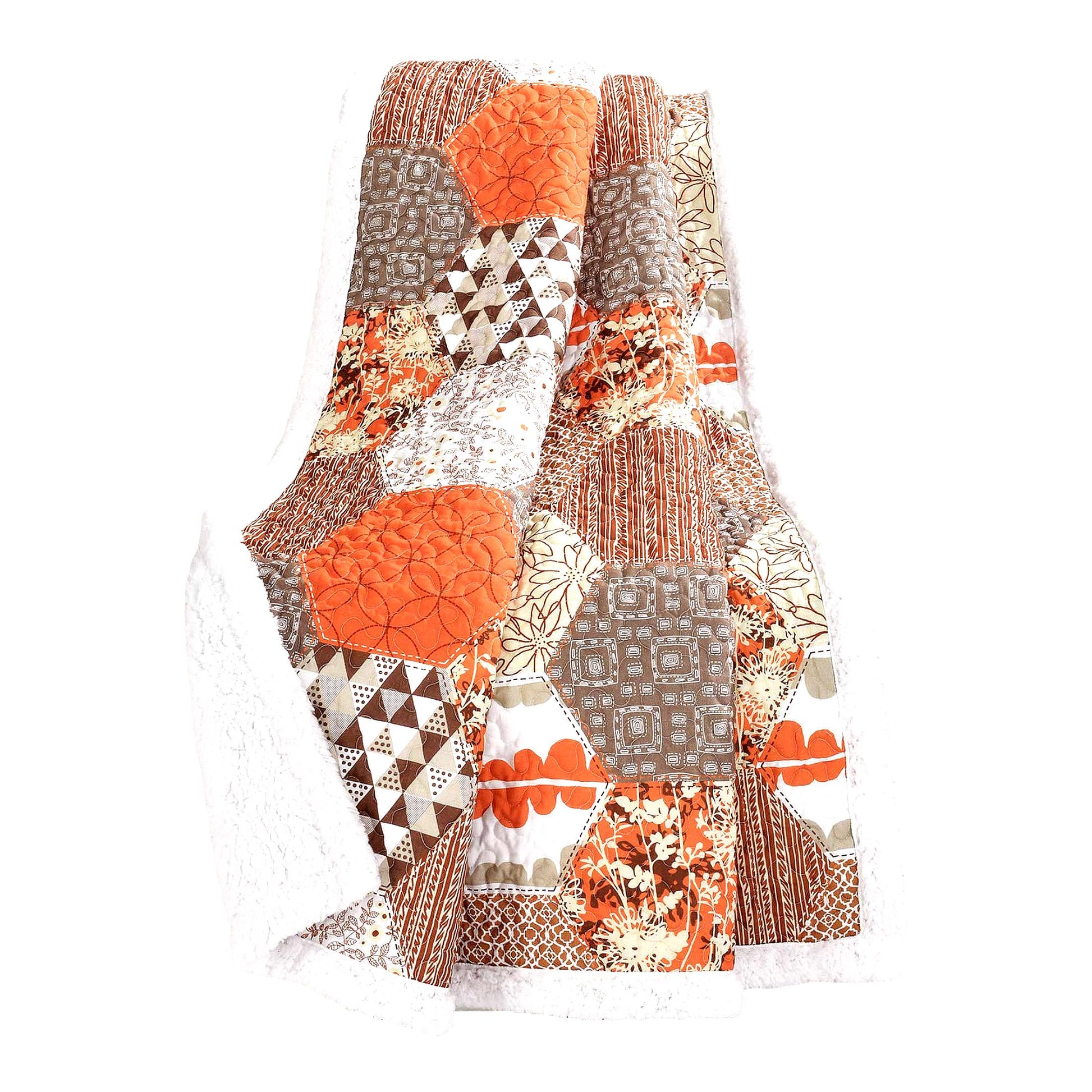 HexaHarmony Reversible Throw - Vibrant Patchwork Blanket, Tangerine Bliss - 60 x 50"